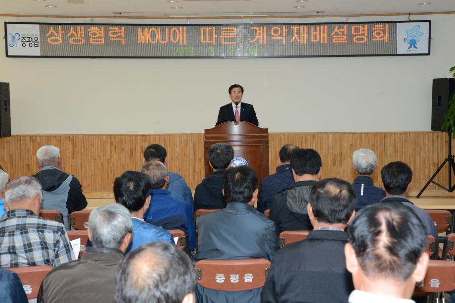 증평군은 27일 증평읍사무소 회의실에서 농업과 기업 간 상생협력을 위한 계약재배 설명회를 개최하고, 증평참깨연구회(대표 이후재)와 ㈜옥천식품(대표 김숙자) 간에 계약재배를 위한 계약을 체결했다.(보도자료실 참조)