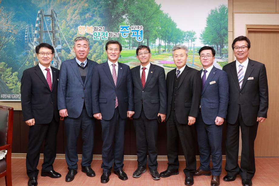 증평군은 19일 군청 군수실에서 청와대와 국가균형발전위원회와 현안 사업 간담회를 개최했다고 19일 밝혔다.