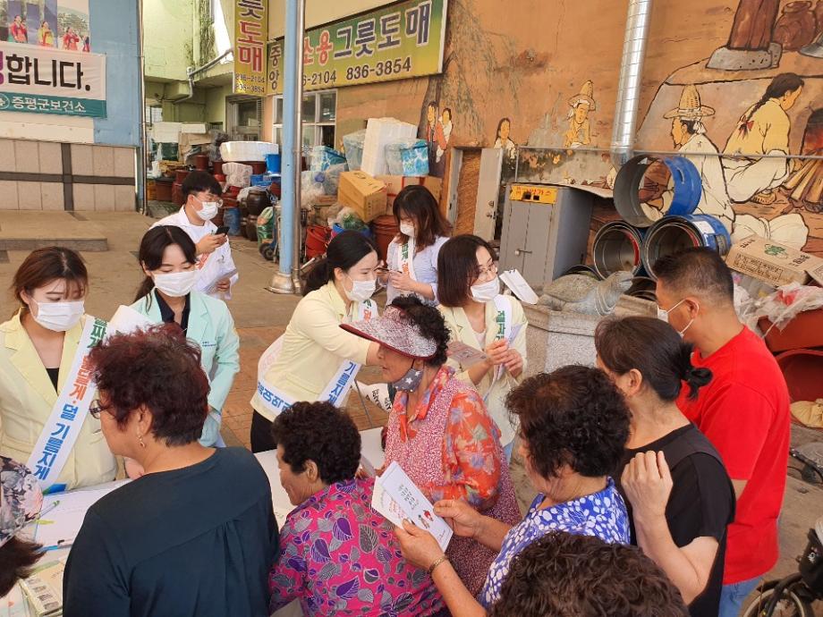 증평군은 지난 21일 ‘덜 짜게, 덜 달게, 덜 기름지게’ 라는 슬로건으로 나트륨 저감화 캠페인을 펼쳤다.