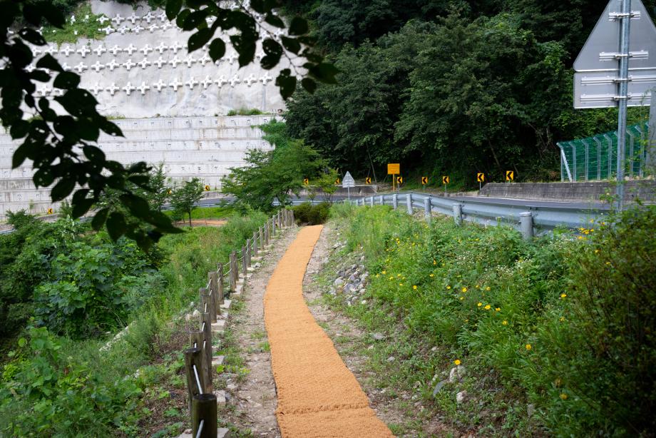 이 구간에는 인도가 없어 보행자가 차도에서 걷는 경우가 빈번했으나 이번 산책로 조성을 통해 보행로와 차도를 나눠 안전을 확보했다.