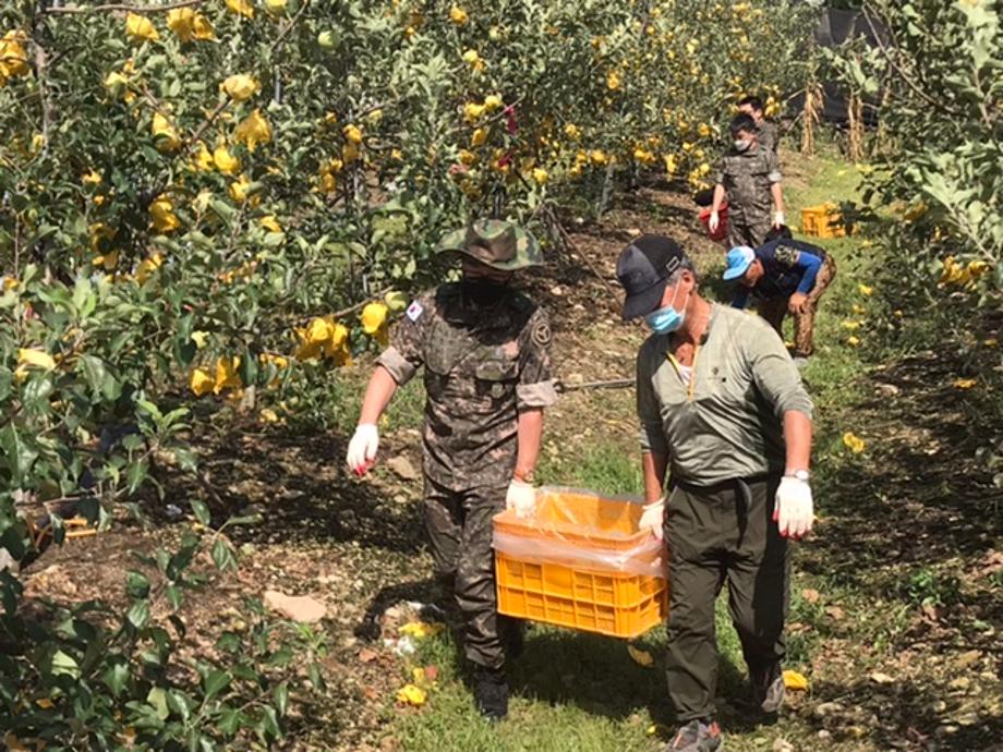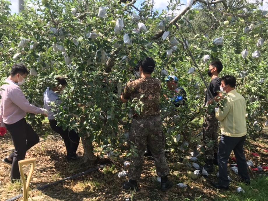 증평군은 지난 2~3일 제9호 태풍‘마이삭’으로 피해를 입은 증평읍 연탄리 사과밭 일원에서 긴급 대민지원에 나섰다.