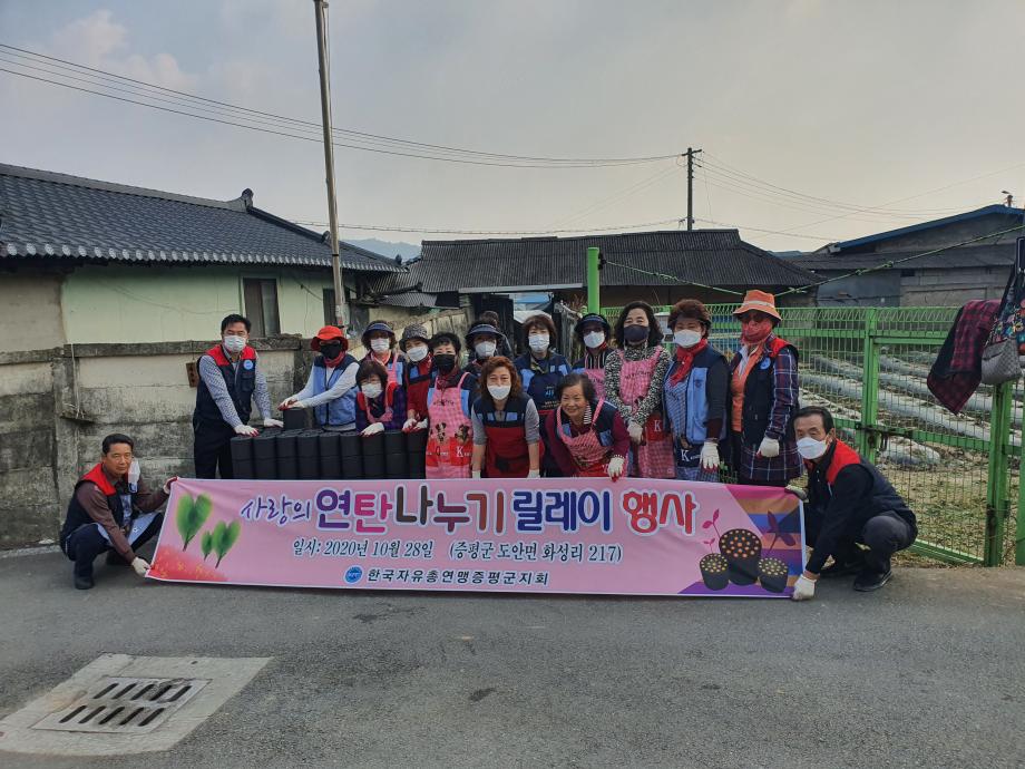 한국자유총연맹 증평군지회(회장 송원호)는 28일 한국자유총연맹 충청북도지부 후원 사랑의 연탄나누기 릴레이 행사를 진행했다.