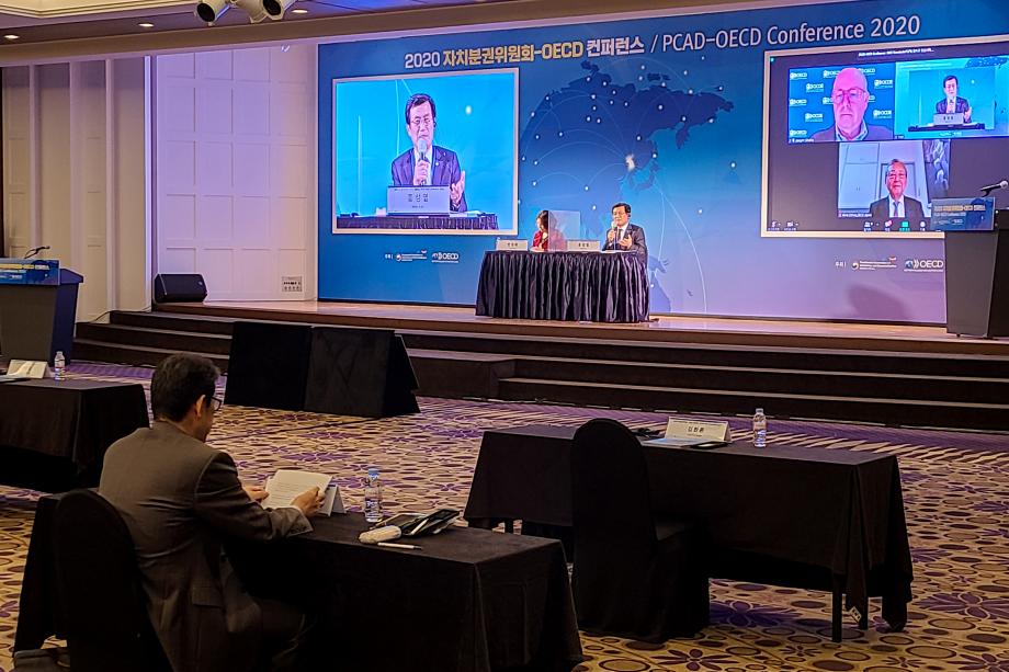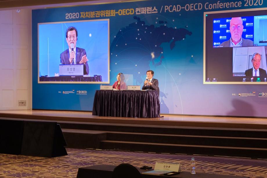 홍성열 증평군수가 28일 서울 더케이 호텔에서 열린 ‘2020 자치분권위원회-OECD 국제컨퍼런스’에 참석, 국제무대서 지방분권의 필요성을 강조했다.
