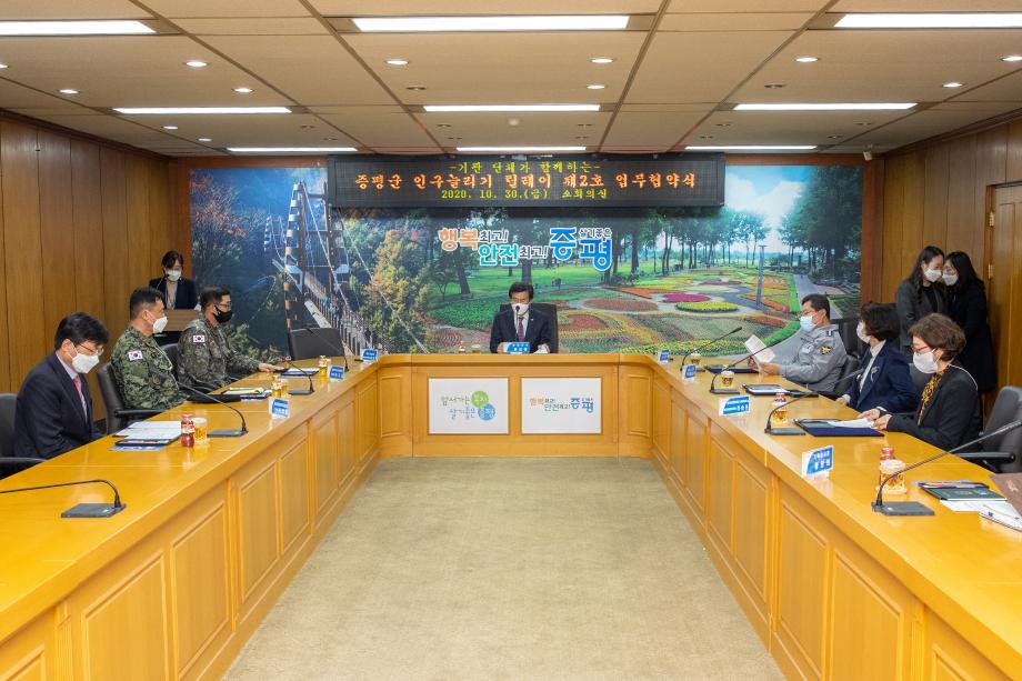 증평군은 30일 군청 소회의실에서 인구늘리기 릴레이 업무협약식을 개최했다.