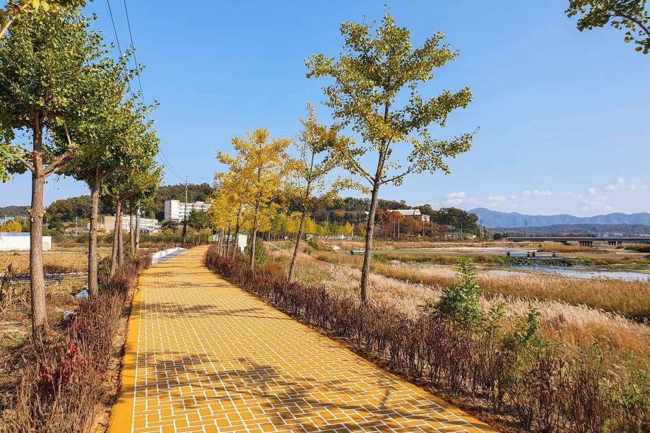 증평군이 보강천 주변 산책로를 정비해 보행안전과 문화시설 접근성을 높였다.