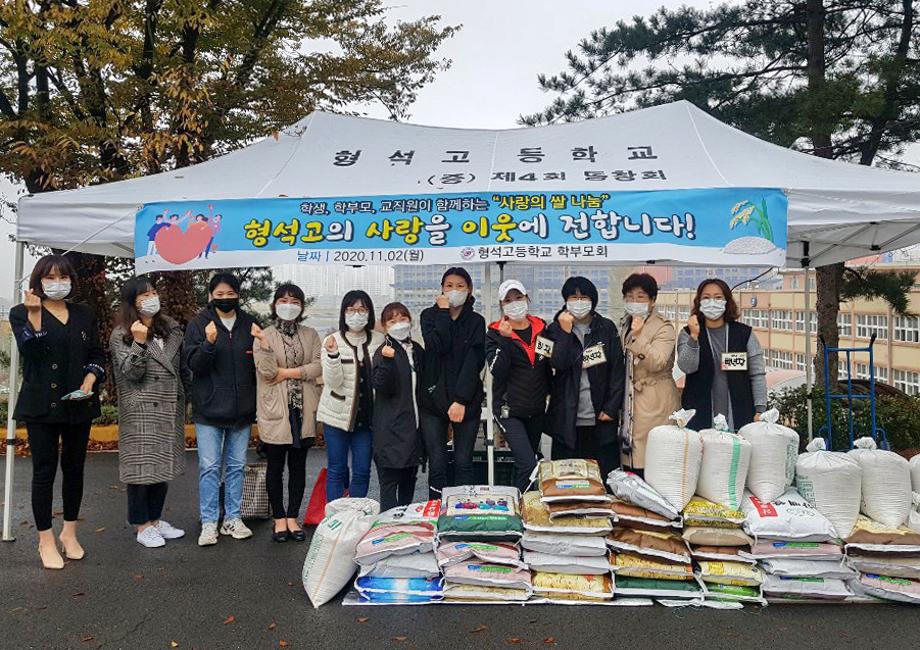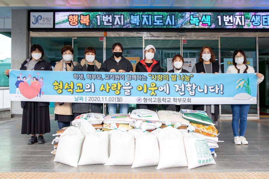 증평 형석고등학교 학부모회는 어려운 이웃을 위해 써달라며 쌀 730kg(256만원 상당)을 기탁했다.