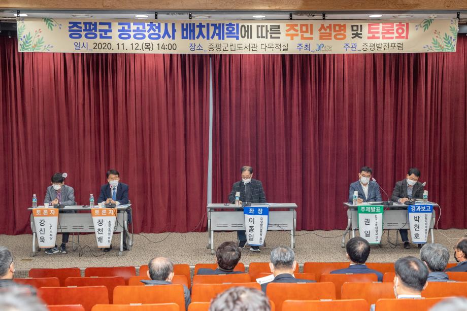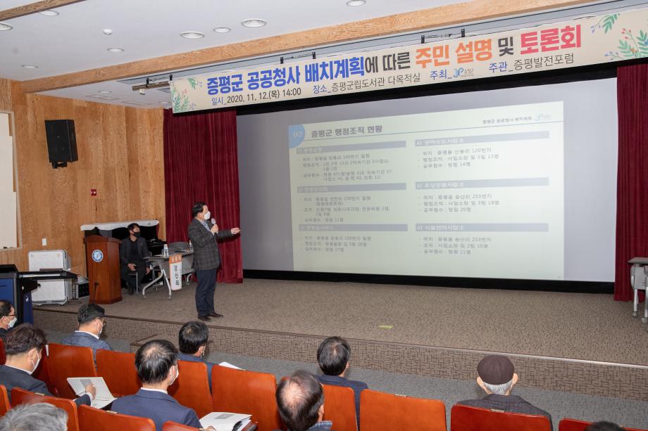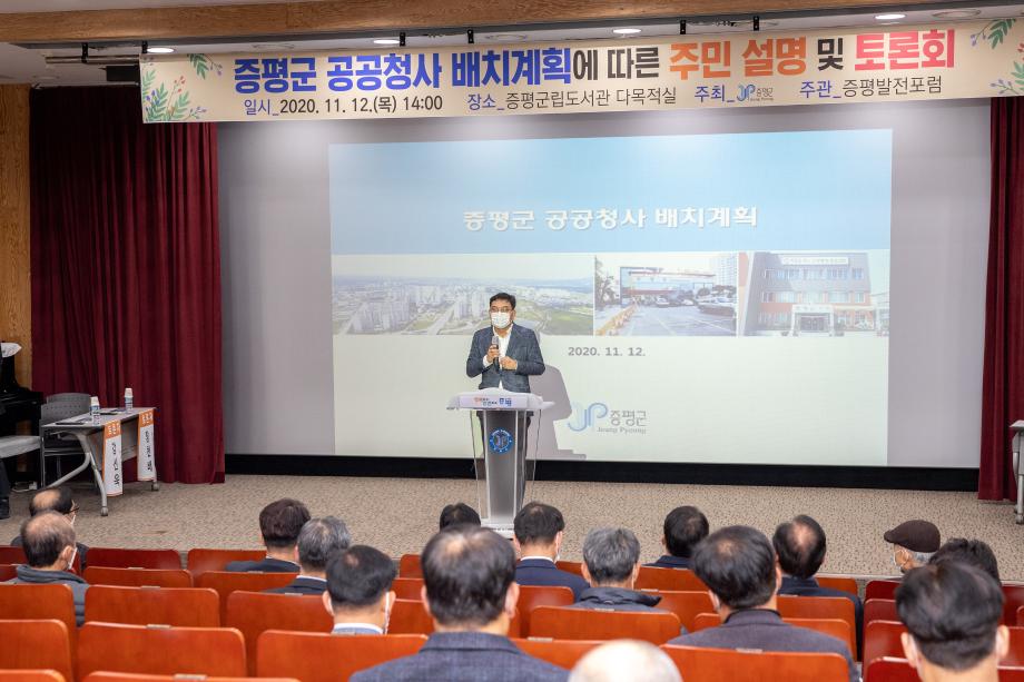 증평군이 12일 증평 군립도서관에서 공공청사 배치계획에 대한 지역 주민과 전문가의 의견을 청취하기 위해 토론회를 개최했다.