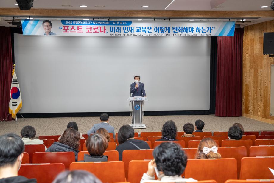 증평군은 17일 김경일 교수를 초청해‘포스트 코로나, 미래 인재 교육은 어떻게 변화해야 하는가’라는 주제로 특강을 실시했다. 이날 특강은 증평행복교육지구 학부모 아카데미의 일환으로 추진됐다.