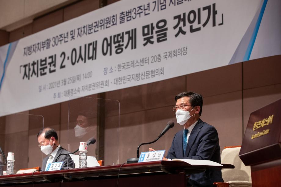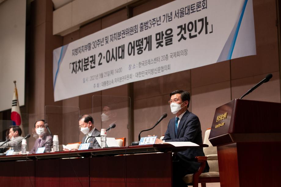 홍성열 증평군수는 25일 한국프레스센터에서 열린 지방자치부활 30주년·자치분권위 출범 3주년 기념 서울대토론회에 참가, 2단계 재정분권의 중요성을 강조했다.