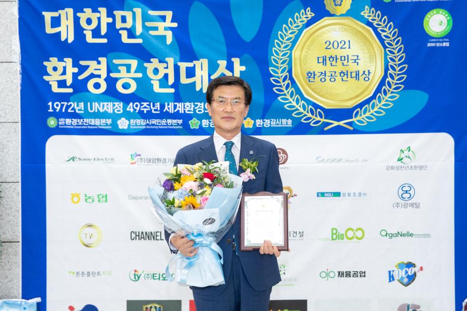 홍성열 군수가 18일 서울 백범 김구 기념관에서 열린「대한민국 환경공헌대상 시상식」에서 환경공헌 대상을 수상했다.