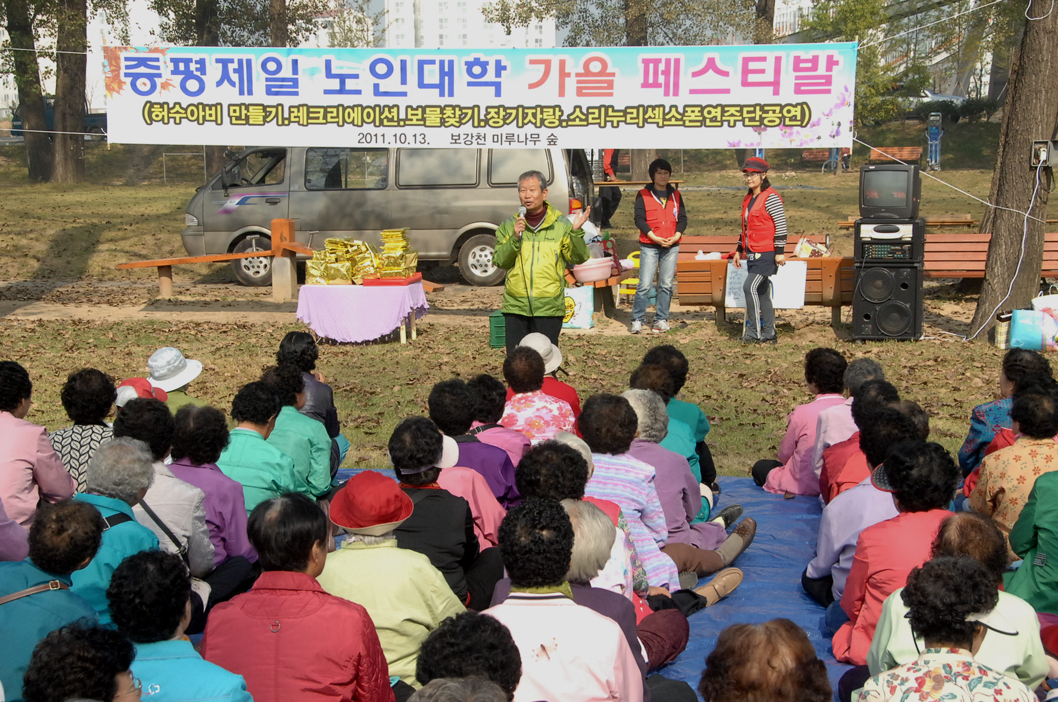 증평제일교회(목사 김석환)는 13일 오전 10시부터 보강천체육공원에서 노인대학 학생 150여명이 참석한 가운데 노인대학 가을페스티벌을 개최했다.