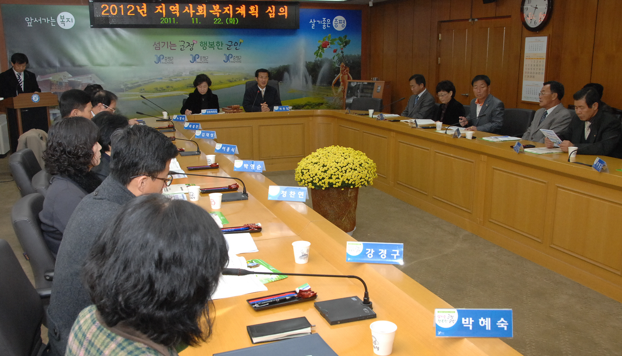 증평군지역사회복지협의체는 22일 오전 9시 30분 군청소회의실에서 2012년 연차별 지역사회복지계획에 대한 심의회의를 개최했다. [보도자료실 참조]