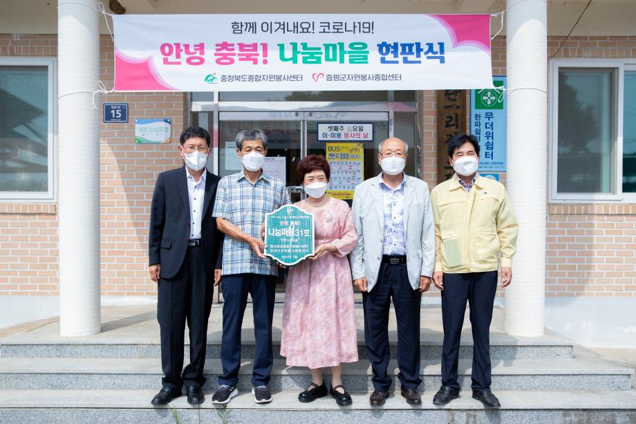 증평군자원봉사종합센터(센터장 김남순)는 30일 증평읍 연탄1리 마을에서‘안녕충북 나눔마을’현판식을 열었다.