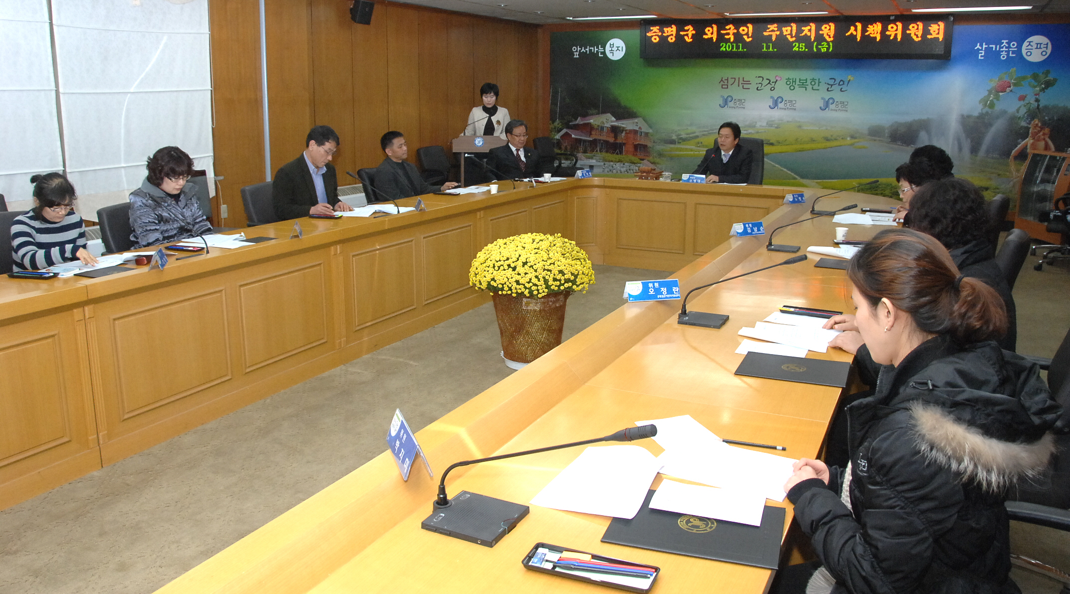 증평군은 25일 군청 소회의실에서 2012년 외국인주민 지원 사업계획을 심의하기 위해 ‘증평군외국인주민지원시책위원회’를 개최했다.[보도자료실 참조]