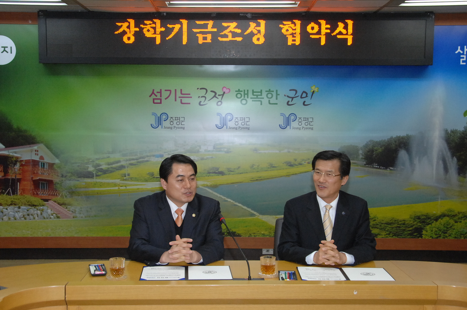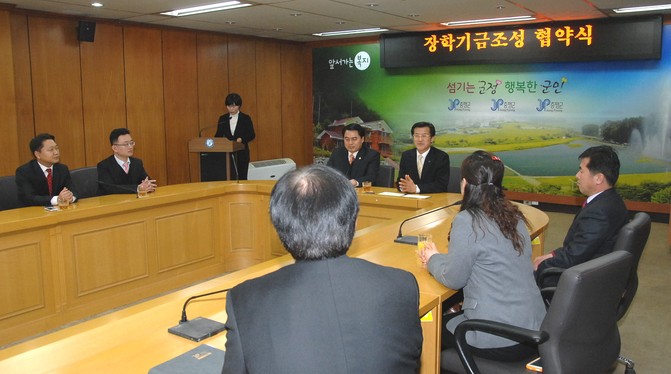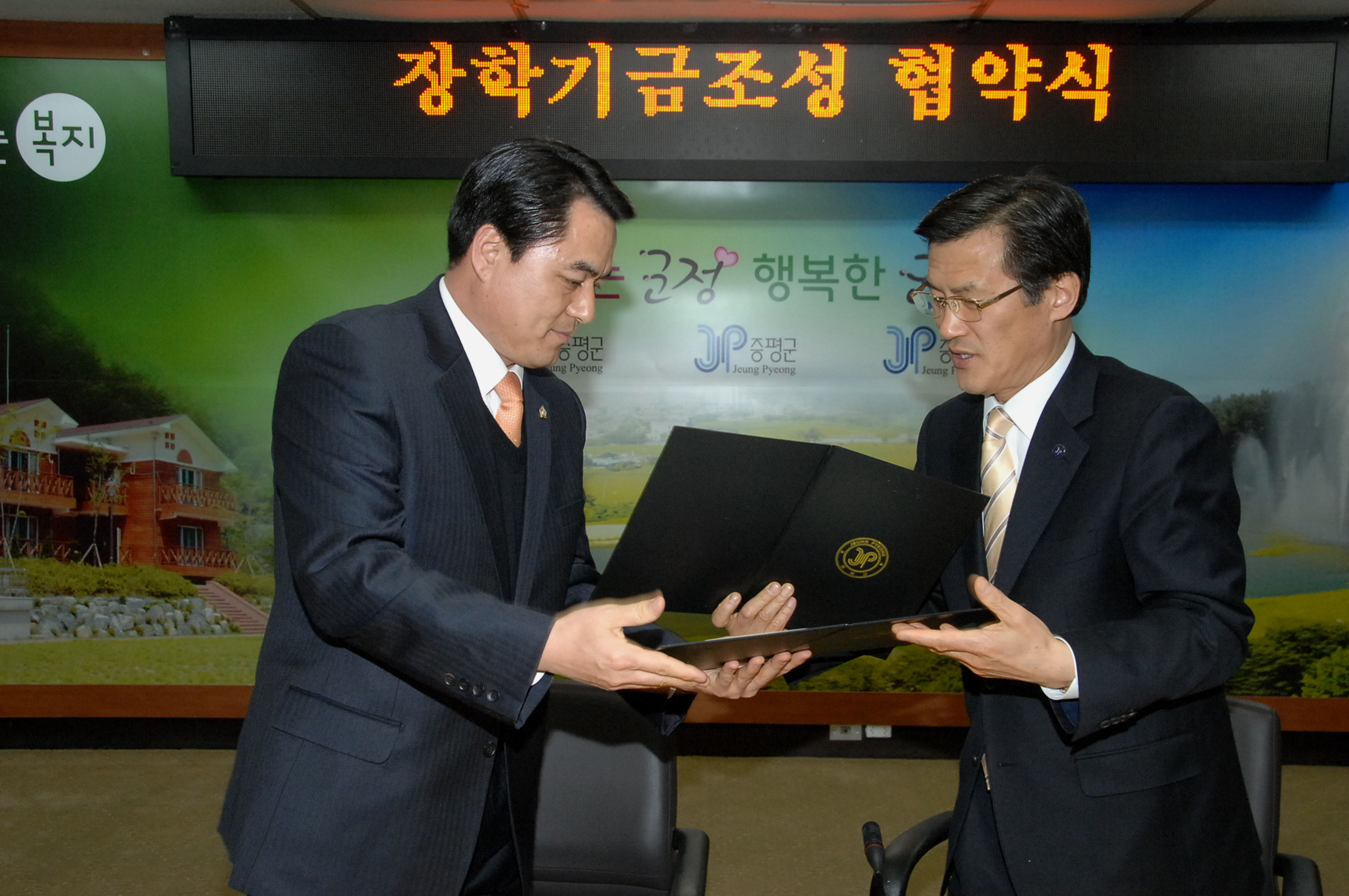 기아자동차 수화대리점과 재)증평군민장학회는 17일 군청소회의실에서 증평군민장학회 장학사업을 위한 장학기금 기탁 협약을 체결했다.[21일 보도자료 참조]