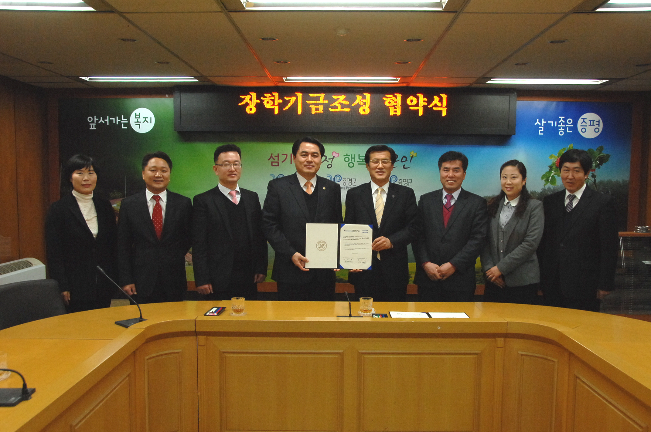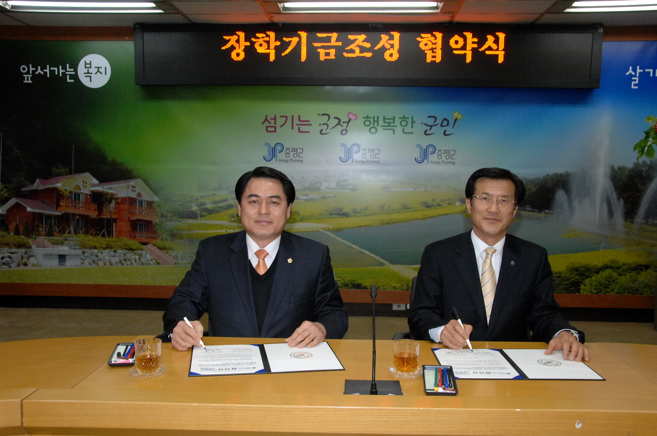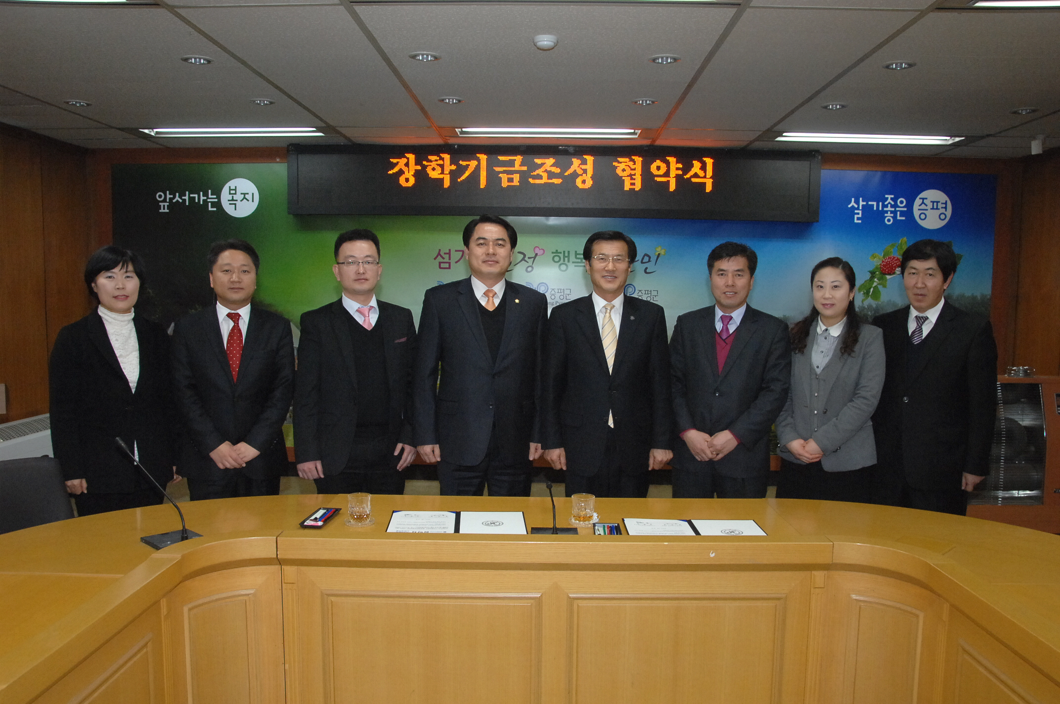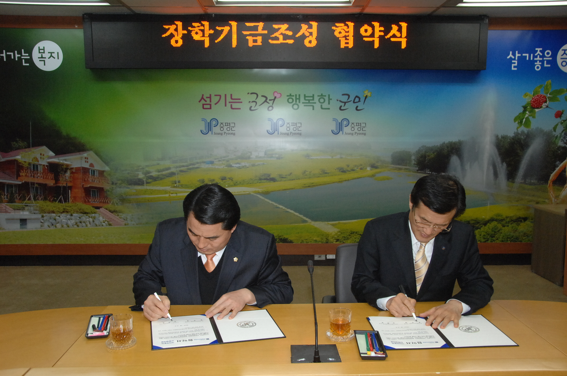 기아자동차 수화대리점과 재)증평군민장학회는 17일 군청소회의실에서 증평군민장학회 장학사업을 위한 장학기금 기탁 협약을 체결했다.[21일 보도자료 참조]