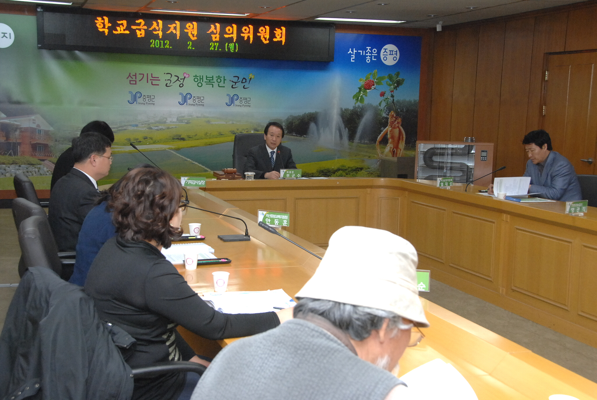 증평군은 효율적이고 체계적인 급식지원을 위해 27일 군청 소회의실에서 학교급식지원 심의위원 13명이 참석한 가운데 ‘2012년 학교급식지원 심의위원회’를 개최했다. [보도자료실 참조]