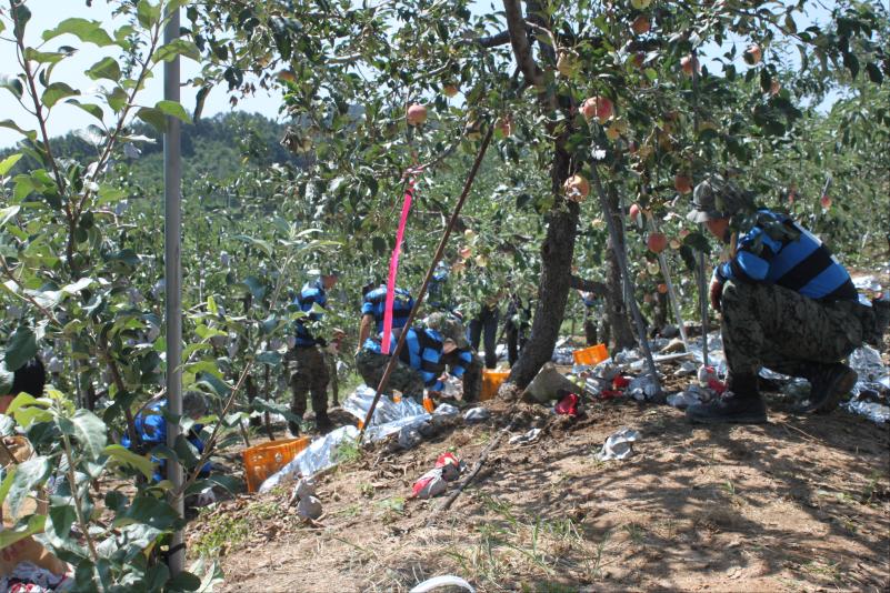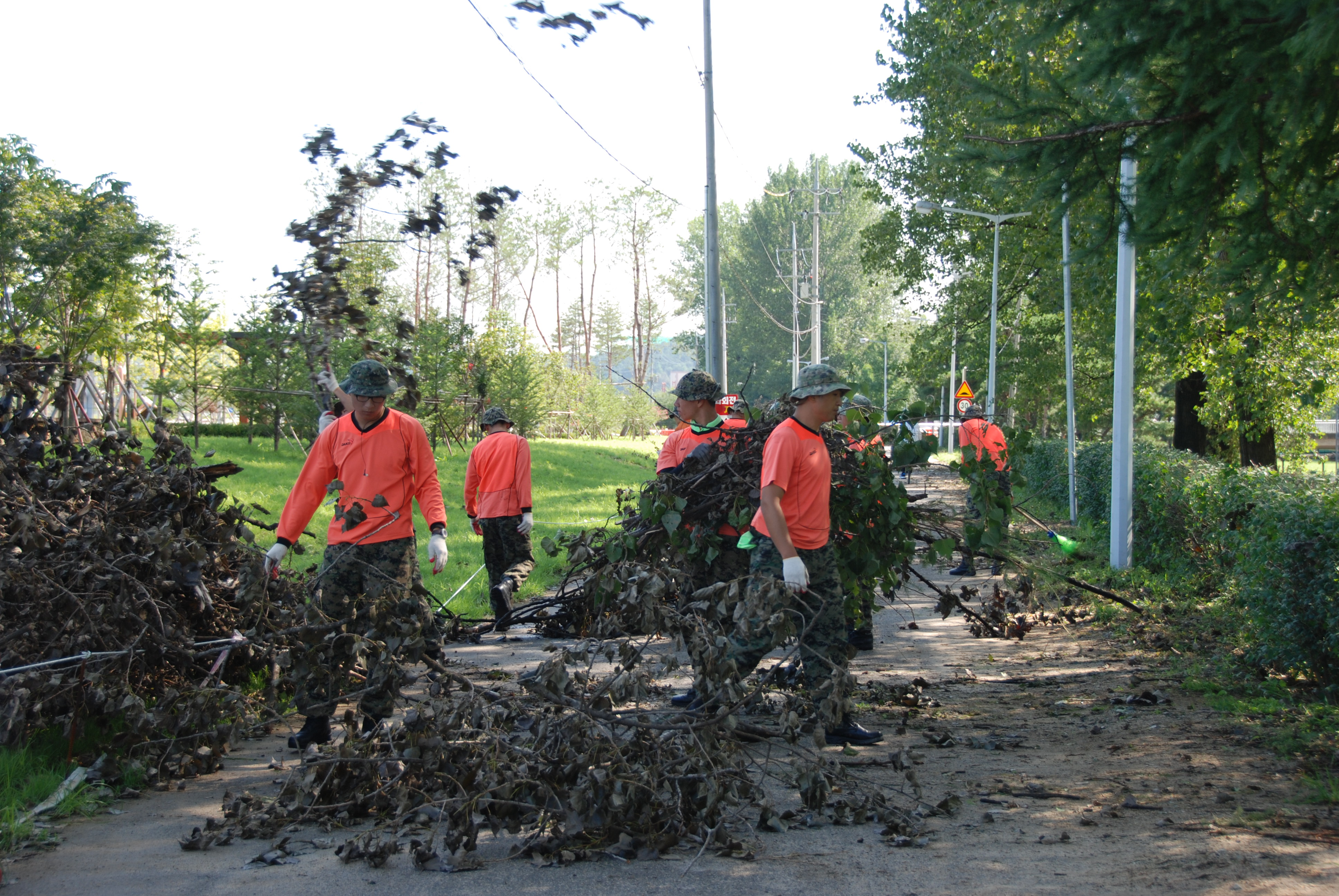 증평군은 31일 제15호 태풍 볼라벤과 제14호 태풍 덴빈으로 인해 발생한 피해를 신속하게 복구하기 위해 육군 제1987부대와 군청 공무원 등을 투입해 긴급 복구지원 작업을 실시했다. [증평포토포커스 참조]