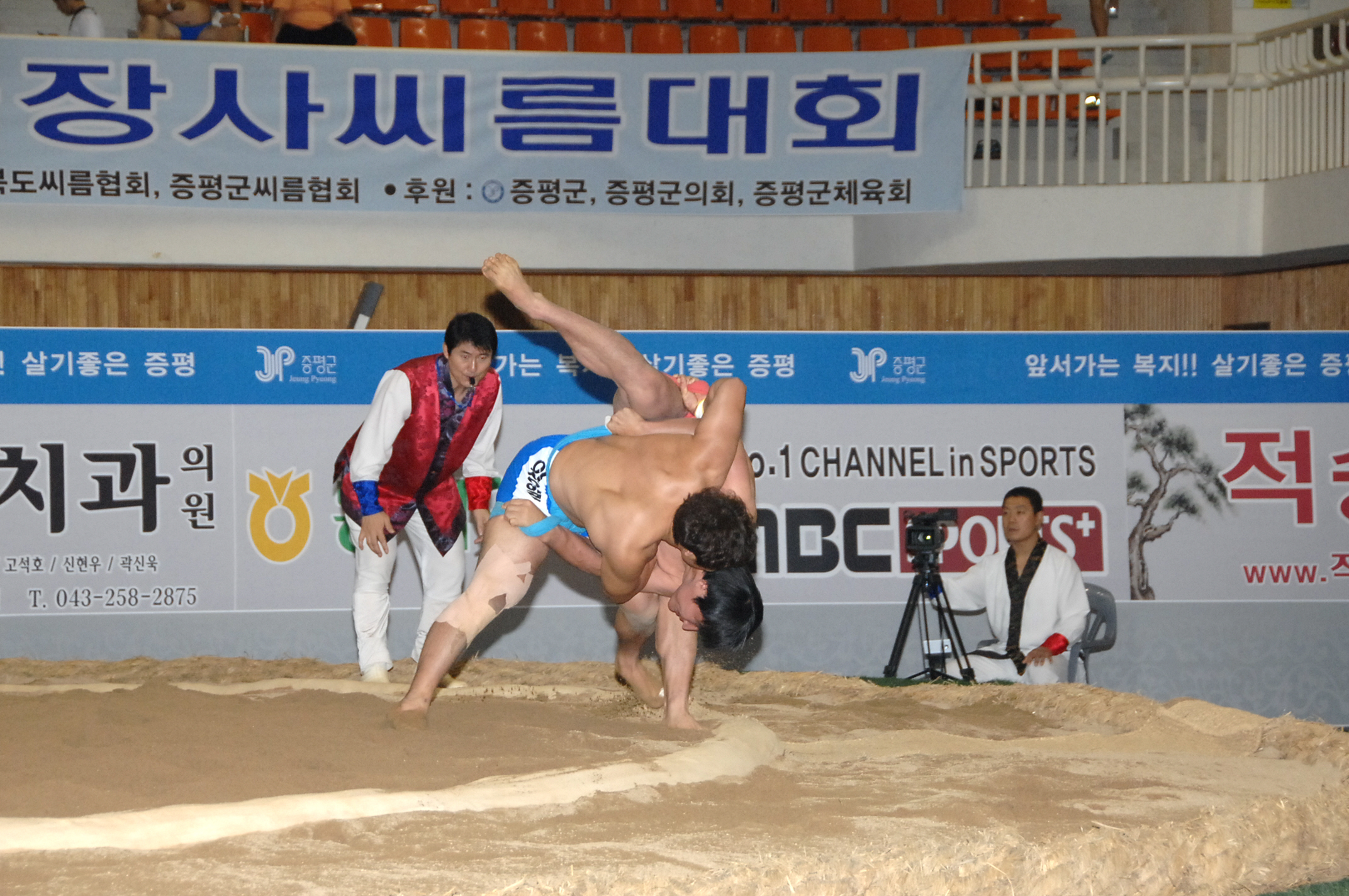 지난 4일 증평종합스포츠센터에서 개막돼 씨름판을 뜨겁게 달궜던 ‘제13회 증평인삼배 전국장사 씨름대회’가 8일 일반부 단체전 및 통일장사부 결승전 경기를 마지막으로 성황리에 막을 내렸다. [보도자료실 참조]