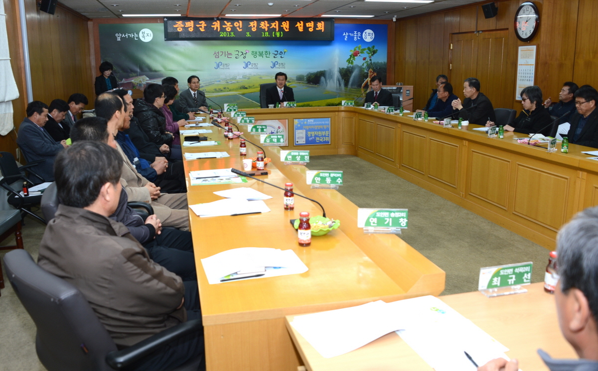 증평군은 18일 오후2시 군청 소회의실에서 지역내 귀농인 20여명을 대상으로 귀농인 정착지원 설명회를 가졌다. [보도자료실 참조]