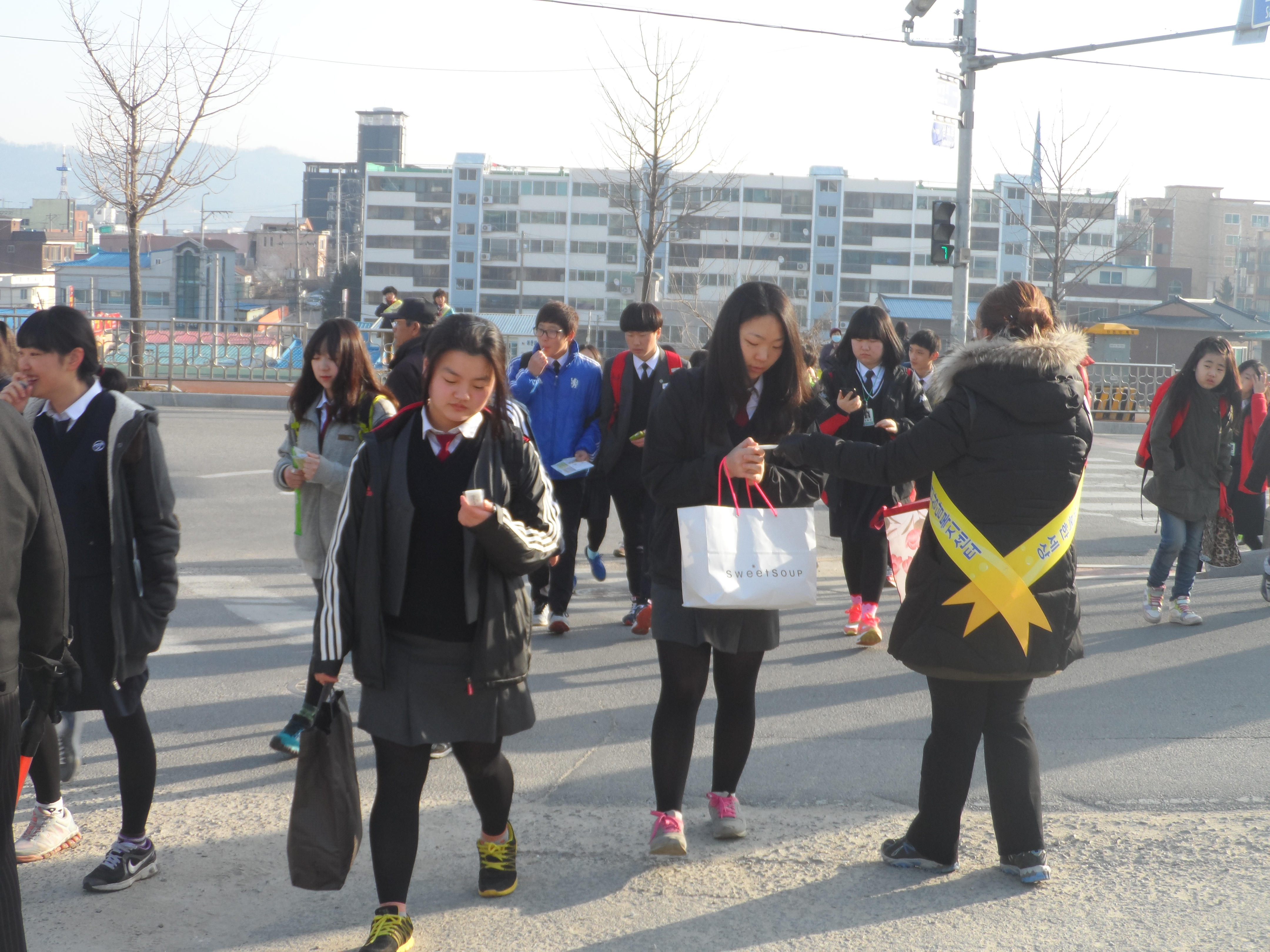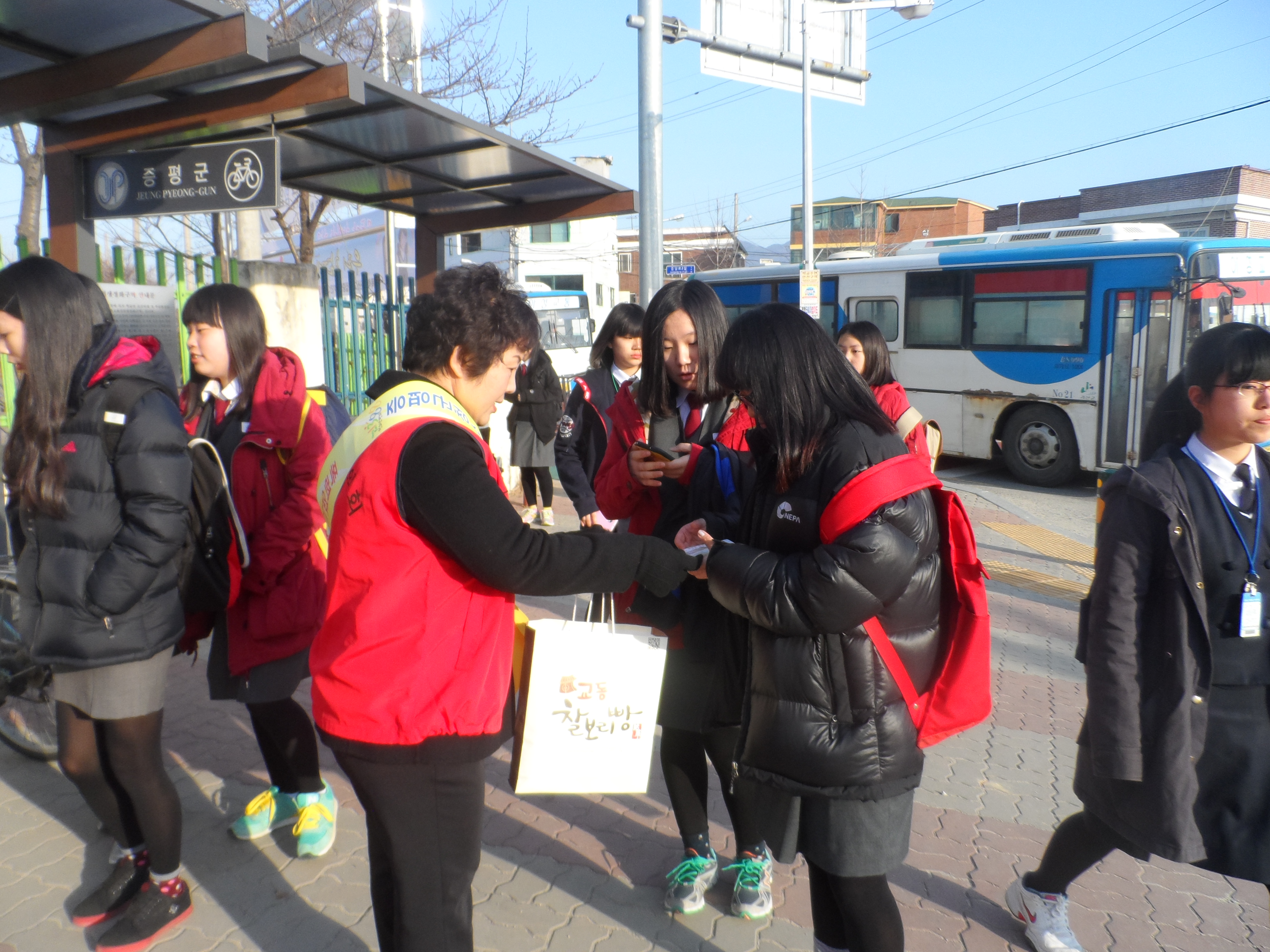 증평군 청소년상담복지센터는 26일 오전 7시30분 괴산경찰서, 역전여성방범대, 증평군여성단체협의회, 증평군가족상담실, 증평군드림스타트센터 등 관내 청소년 유관기관과 합동으로 증평여중과 증평정보고교 정문에서 학교폭력예방 및 건강하고 안전한 사회를 만들기 위해 캠페인을 전개했다.