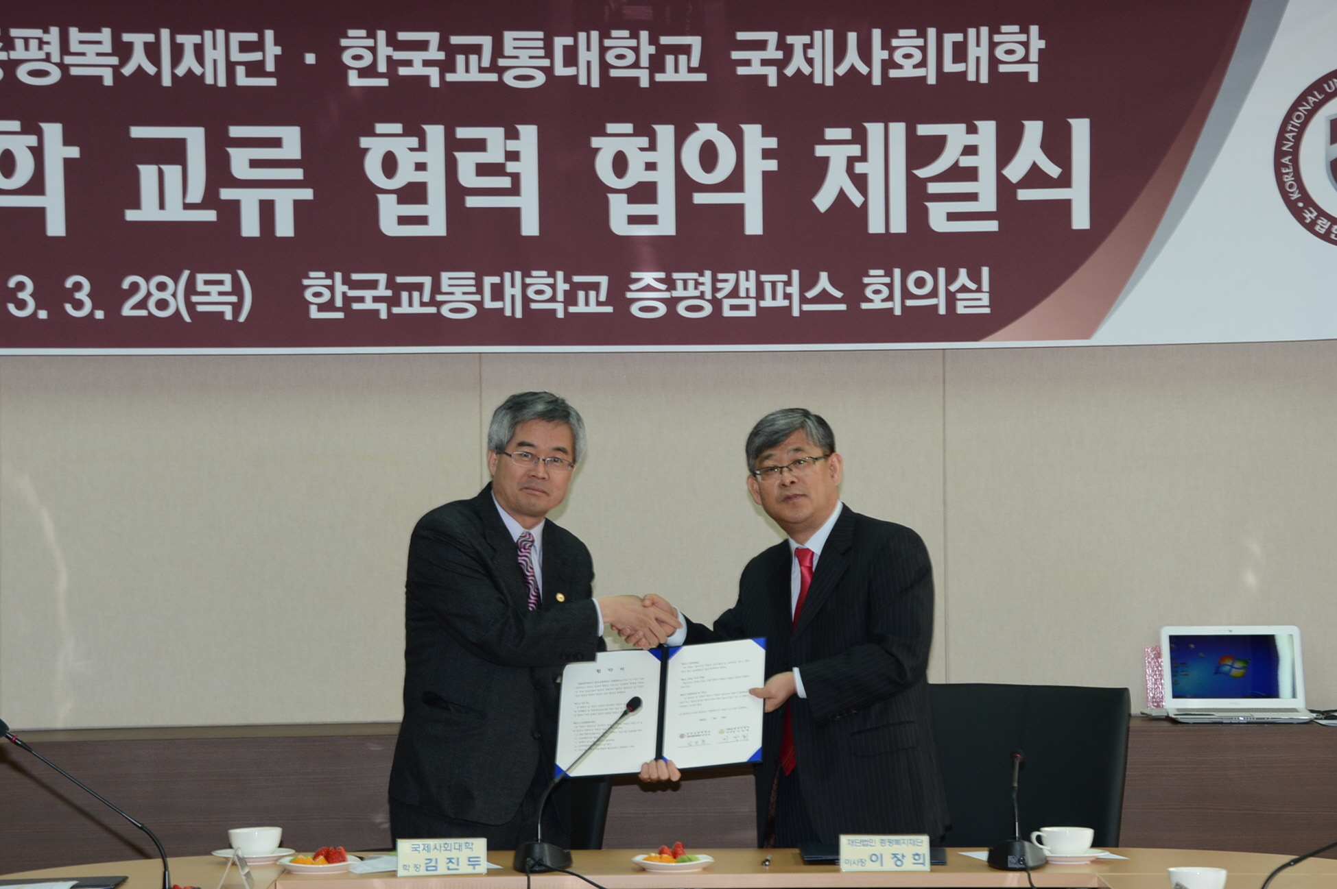 [재] 증평복지재단(이장희 이사장)이 한국교통대학증평캠퍼스 국제사회대학(김진두 학장), 보건생명대학(이미현 학장)과 상호협력 체계를 구축하기 위한 MOU를 28일 체결했다. [보도자료실 참조]