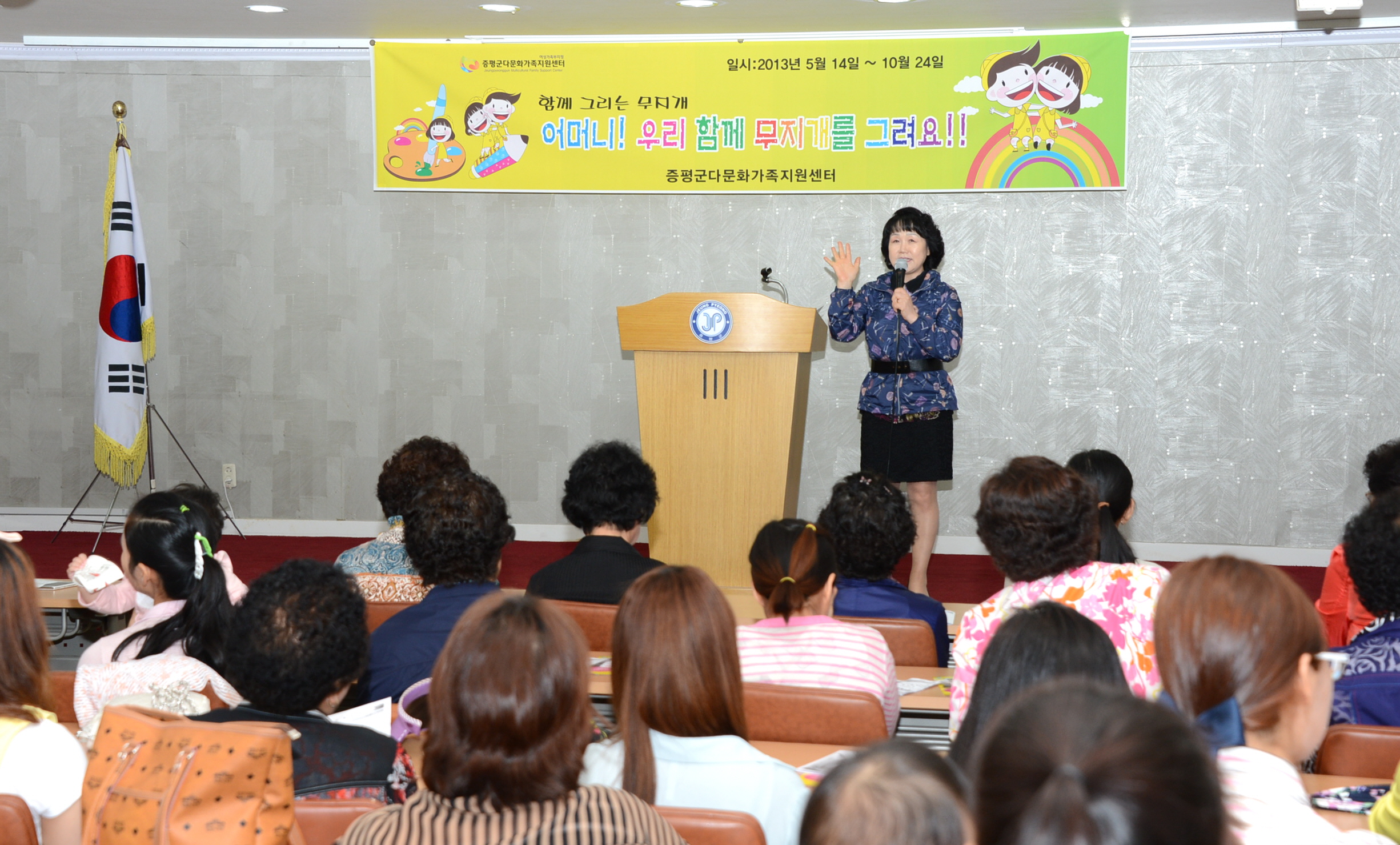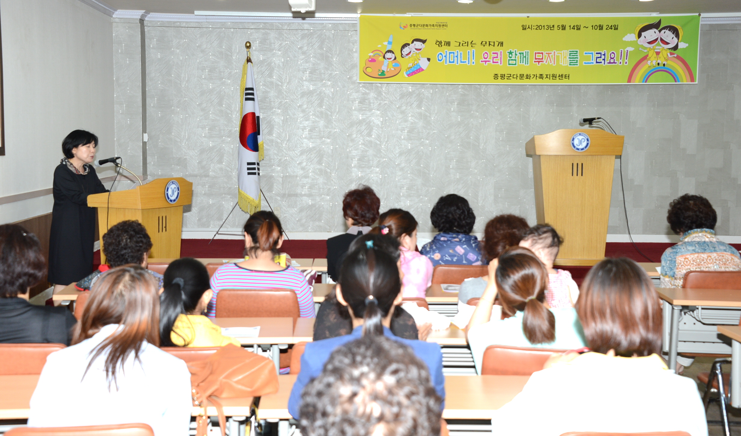 증평군 다문화가족지원센터(노명숙 센터장)는 14일 오전11시 여성회관에서 고부 간 갈등을 해소와 결혼이민여성들의 안정적인 정착을 지원하는 ‘함께 그리는 무지개’ 프로그램 개강식을 가졌다. [보도자료실 참조]