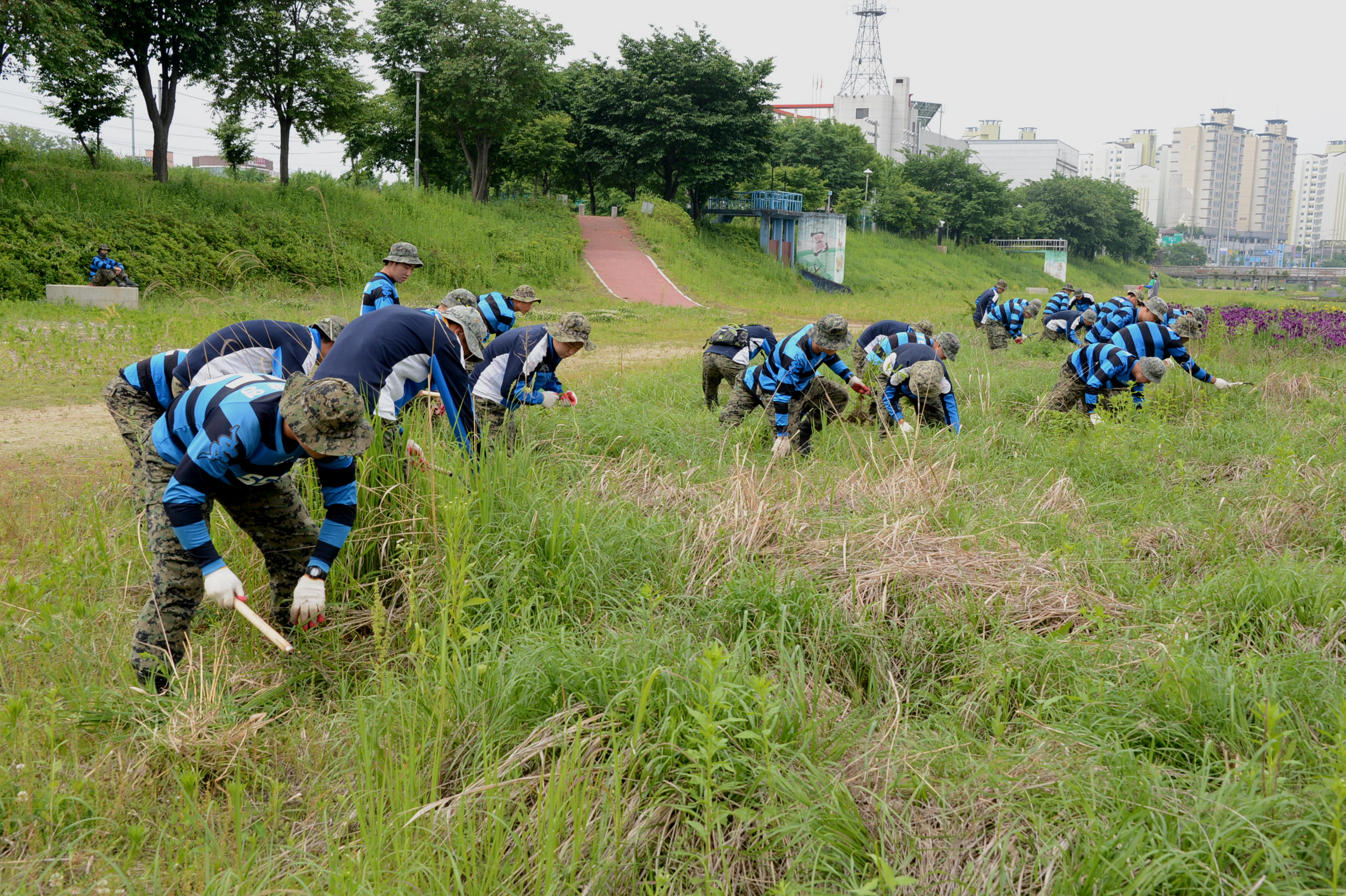 증평지역 군부대 장병들과 충북장애인협회 회원 등 70여명은 지난달 30일부터 31일까지 2일간 송산교에서 미암교에 이르는 보강천을 중심으로 쓰레기 수거 등 환경정화 활동에 구슬땀을 흘렸다. [보도자료실 참조]