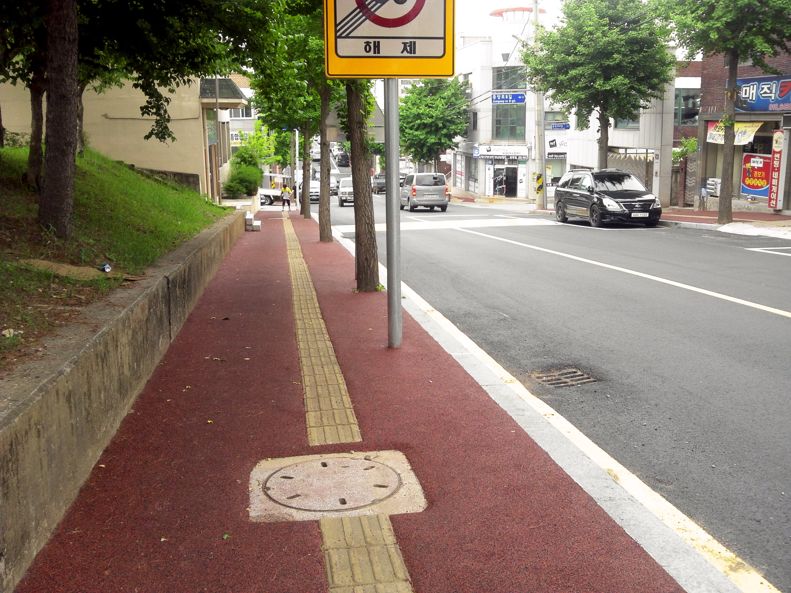증평군은 시가지 일원의 보행자도로를 안전하고 편안하게 통행 할 수 있도록 증평시가지 일원의 보행자도로에 탄성포장을 실시했다. [증평보도자료실 참조]