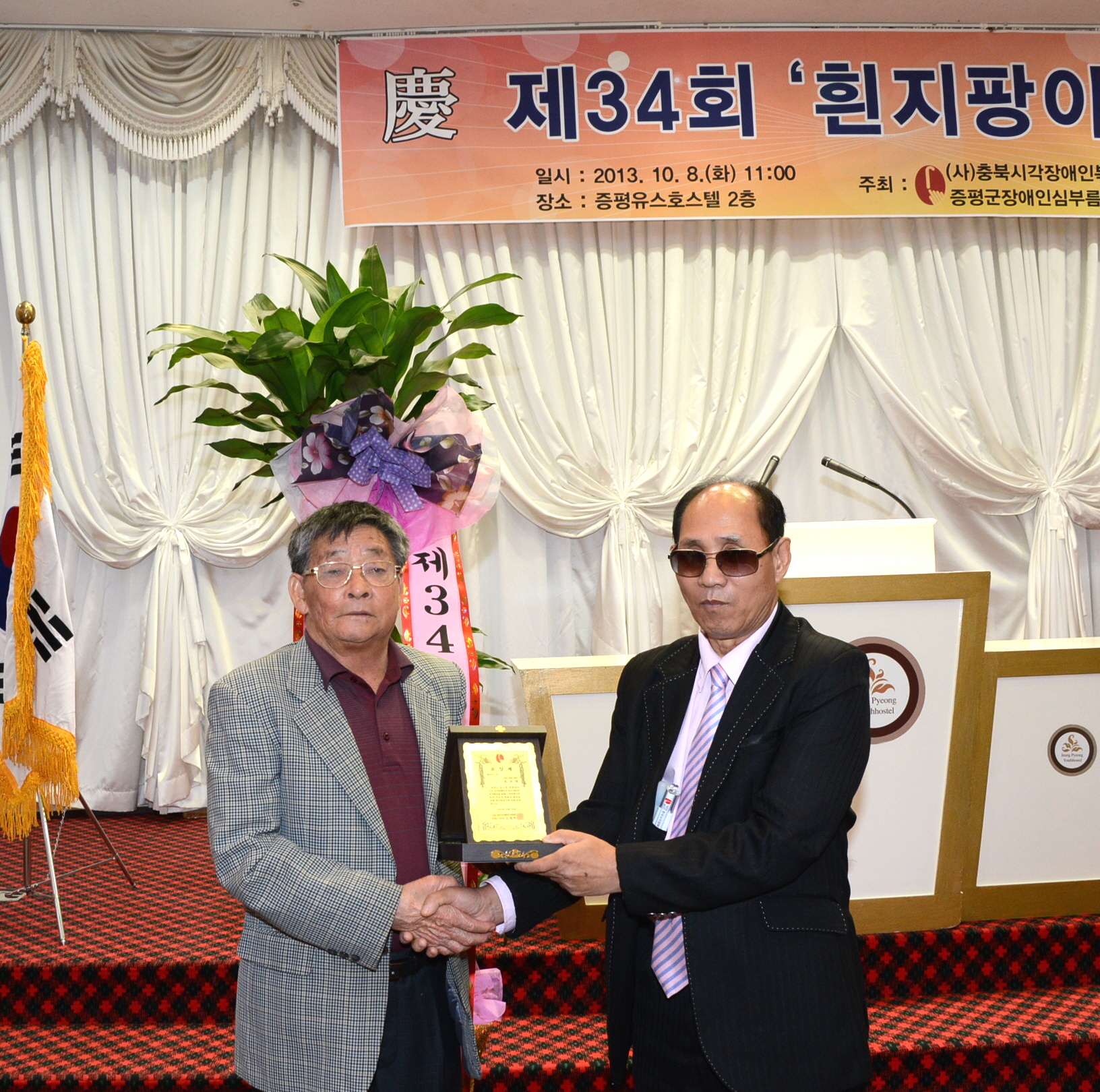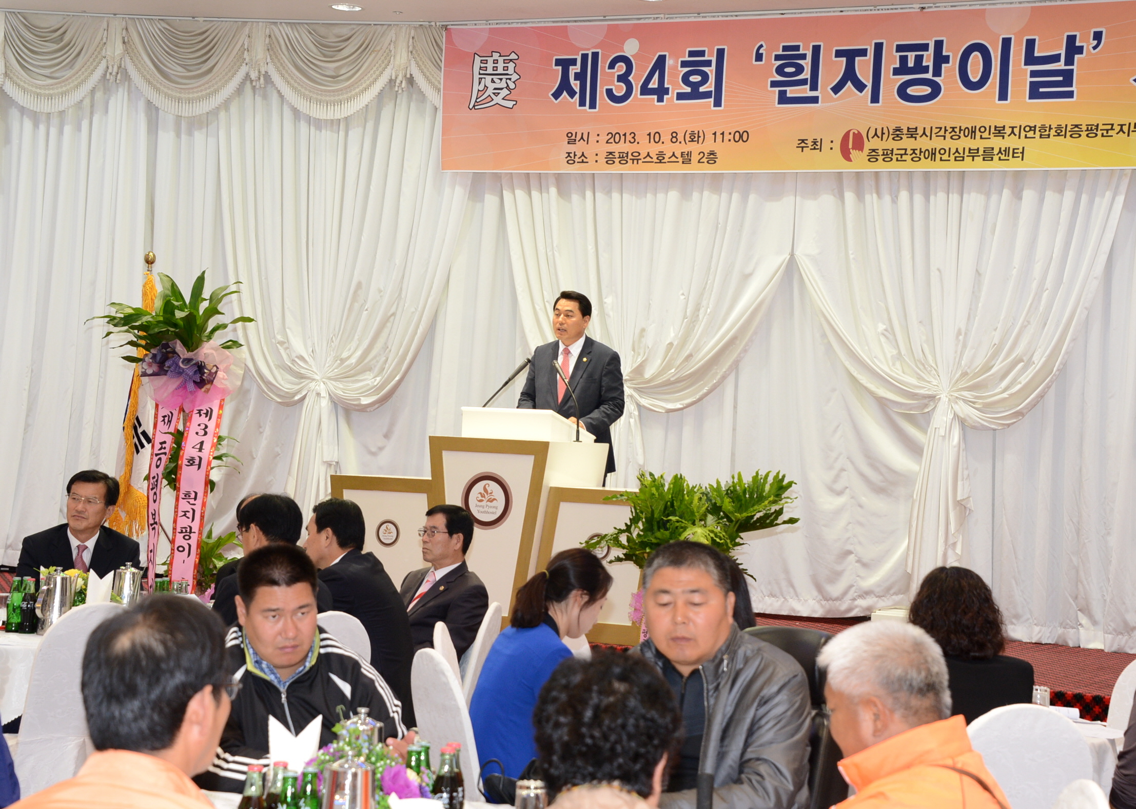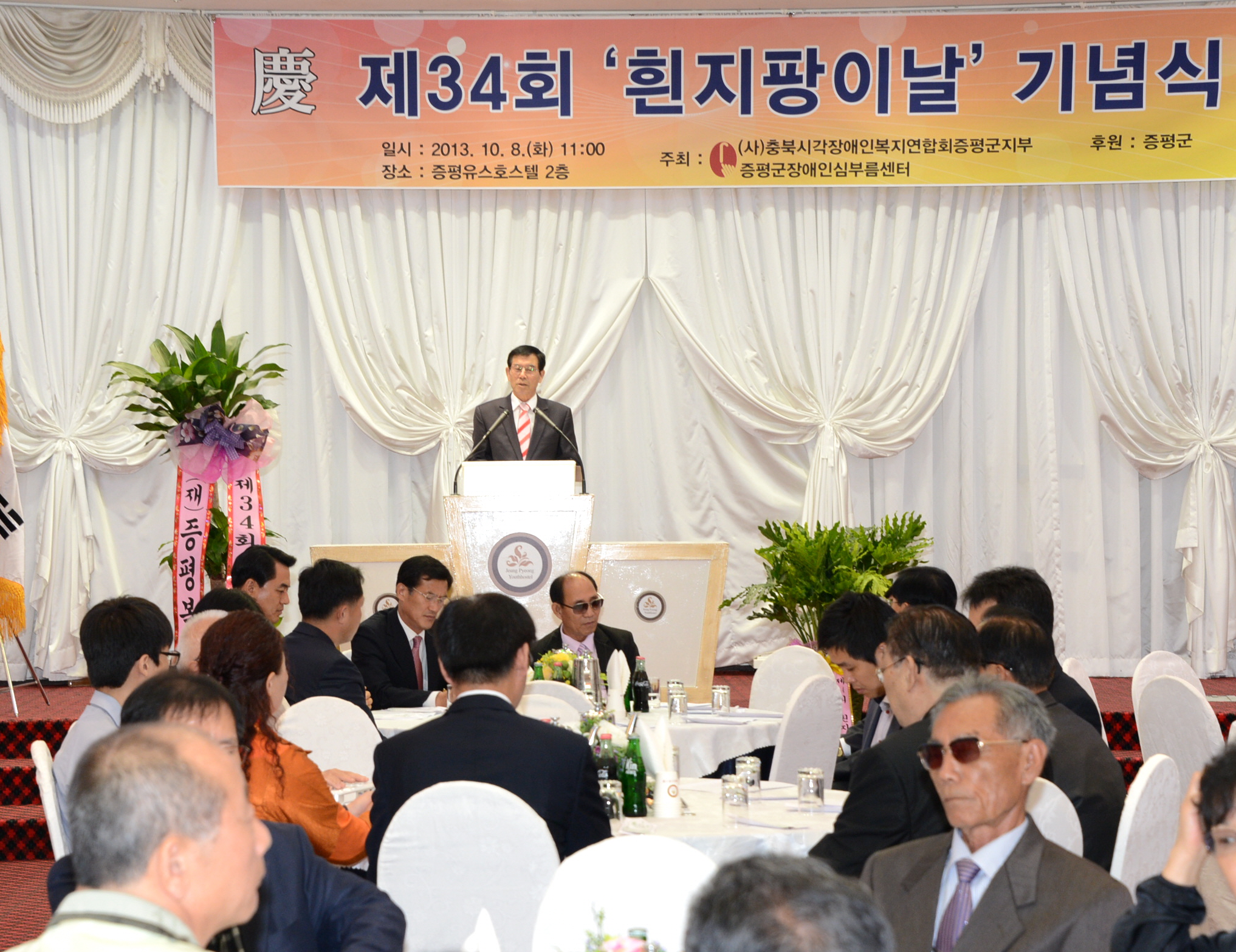 시각장애인의 복지증진과 시각장애인에 대한 올바른 이해를 도모하기 위한 제34회 흰지팡이의 날 기념행사가 8일 오전 11시 홍성열 군수, 박석규 군의장을 비롯한 지역인사와 지역 시각장애인 등 170여명이 참여한 가운데 증평군유스호스텔 2층 연회장에서 열렸다. [보도자료실 참조]