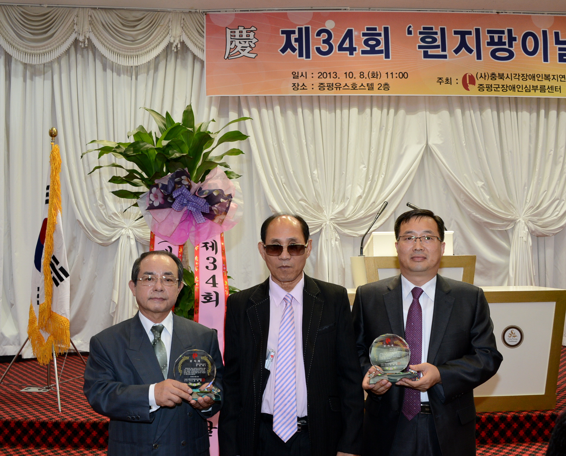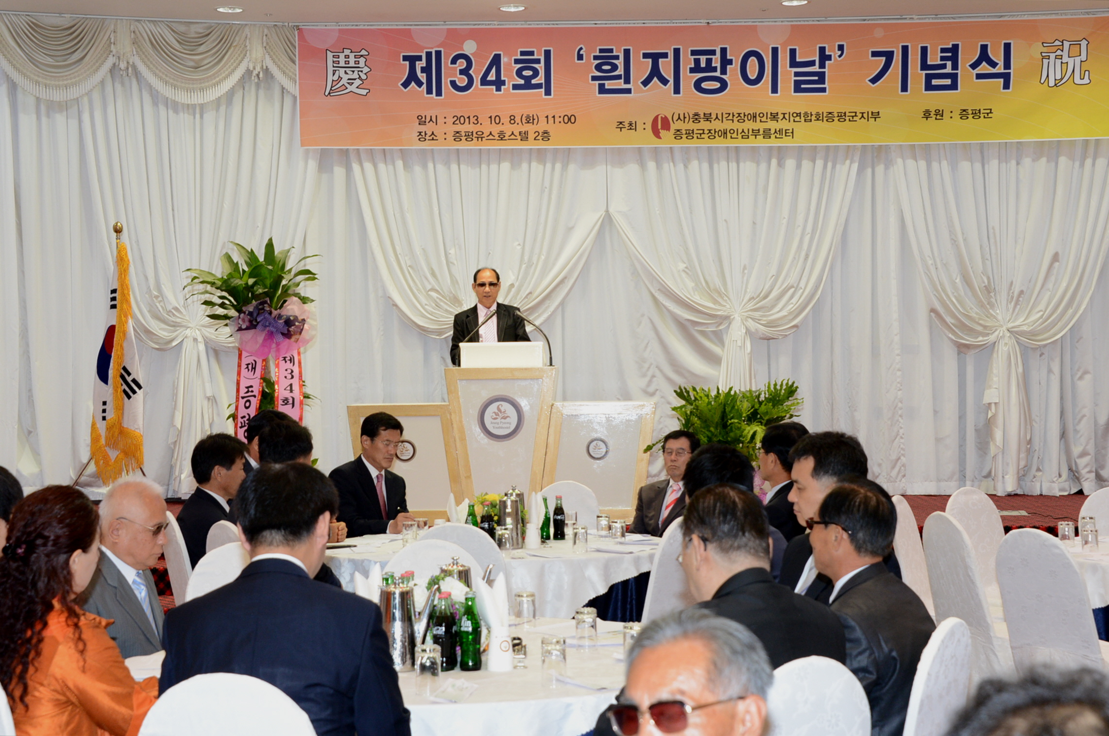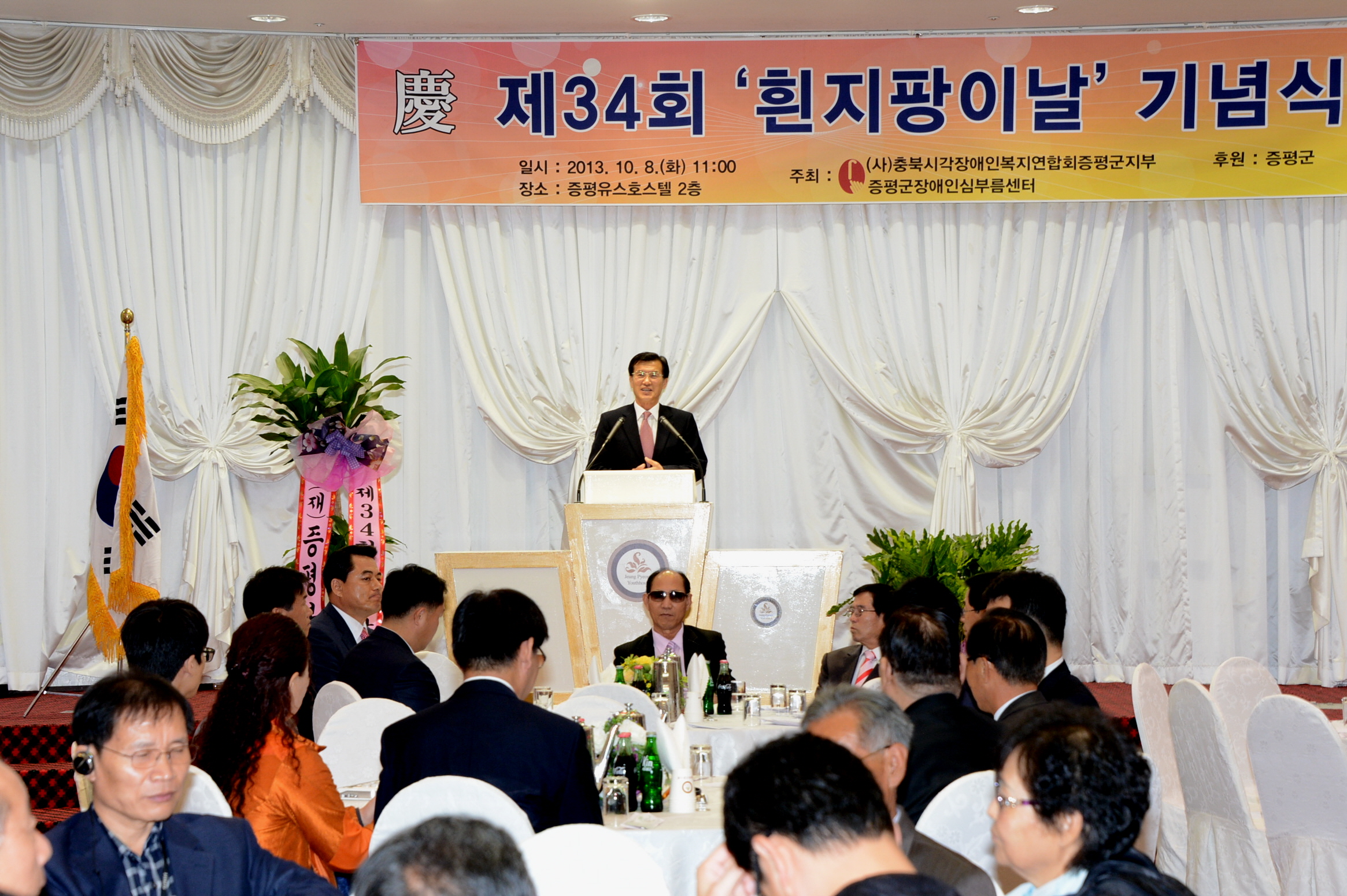 시각장애인의 복지증진과 시각장애인에 대한 올바른 이해를 도모하기 위한 제34회 흰지팡이의 날 기념행사가 8일 오전 11시 홍성열 군수, 박석규 군의장을 비롯한 지역인사와 지역 시각장애인 등 170여명이 참여한 가운데 증평군유스호스텔 2층 연회장에서 열렸다. [보도자료실 참조]