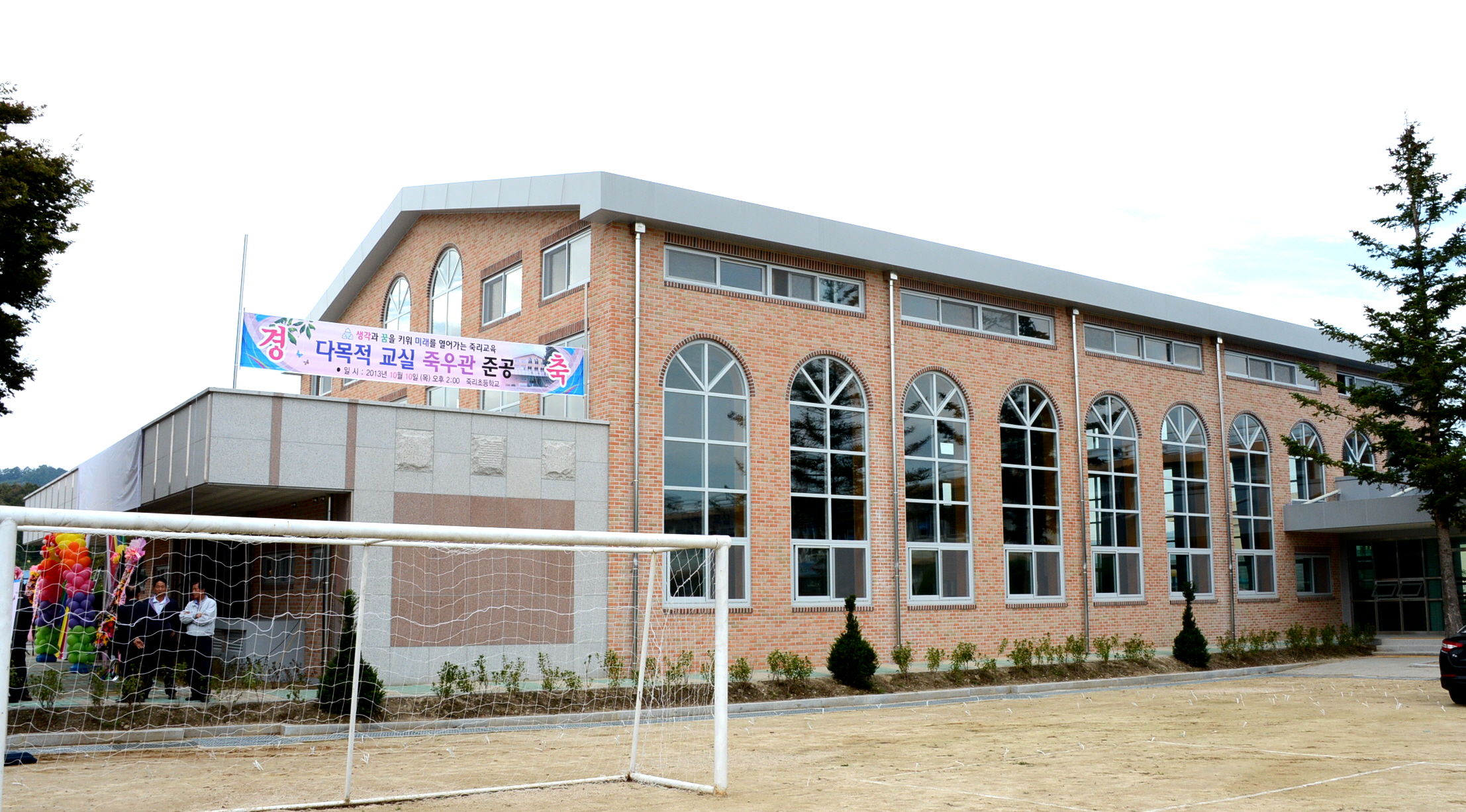 증평 죽리초등학교(교장 정환동)에서는 10일 이기용 충청북도교육감, 홍성열 증평군수, 박석규 증평군의회 의장을 비롯해 교육청 산하기관장, 학부모, 지역 주민 등 250여명이 참석한 가운데 오랜 숙원이었던 다목적교실 ‘죽우관’의 준공식이 개최됐다. [보도자료실 참조]