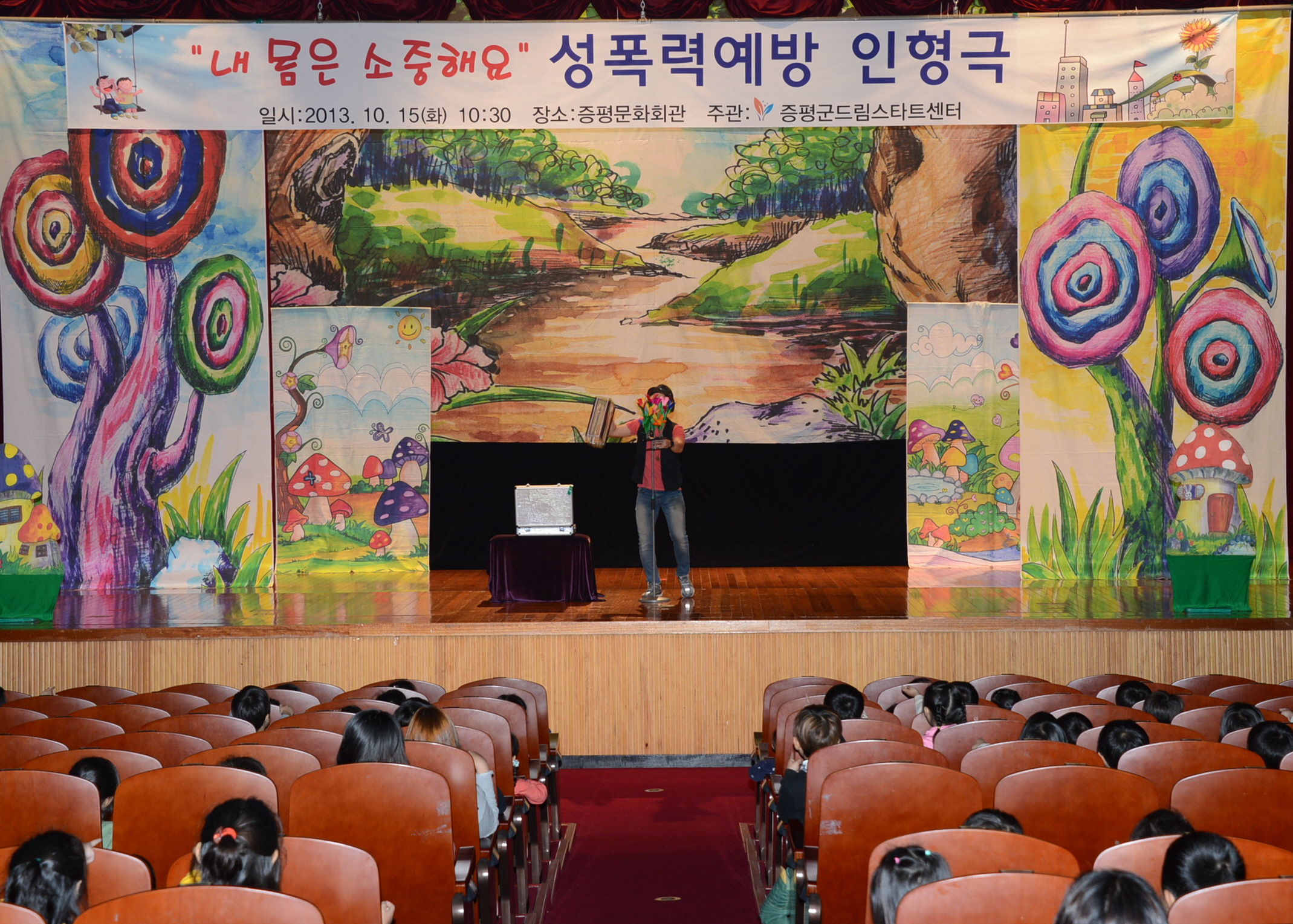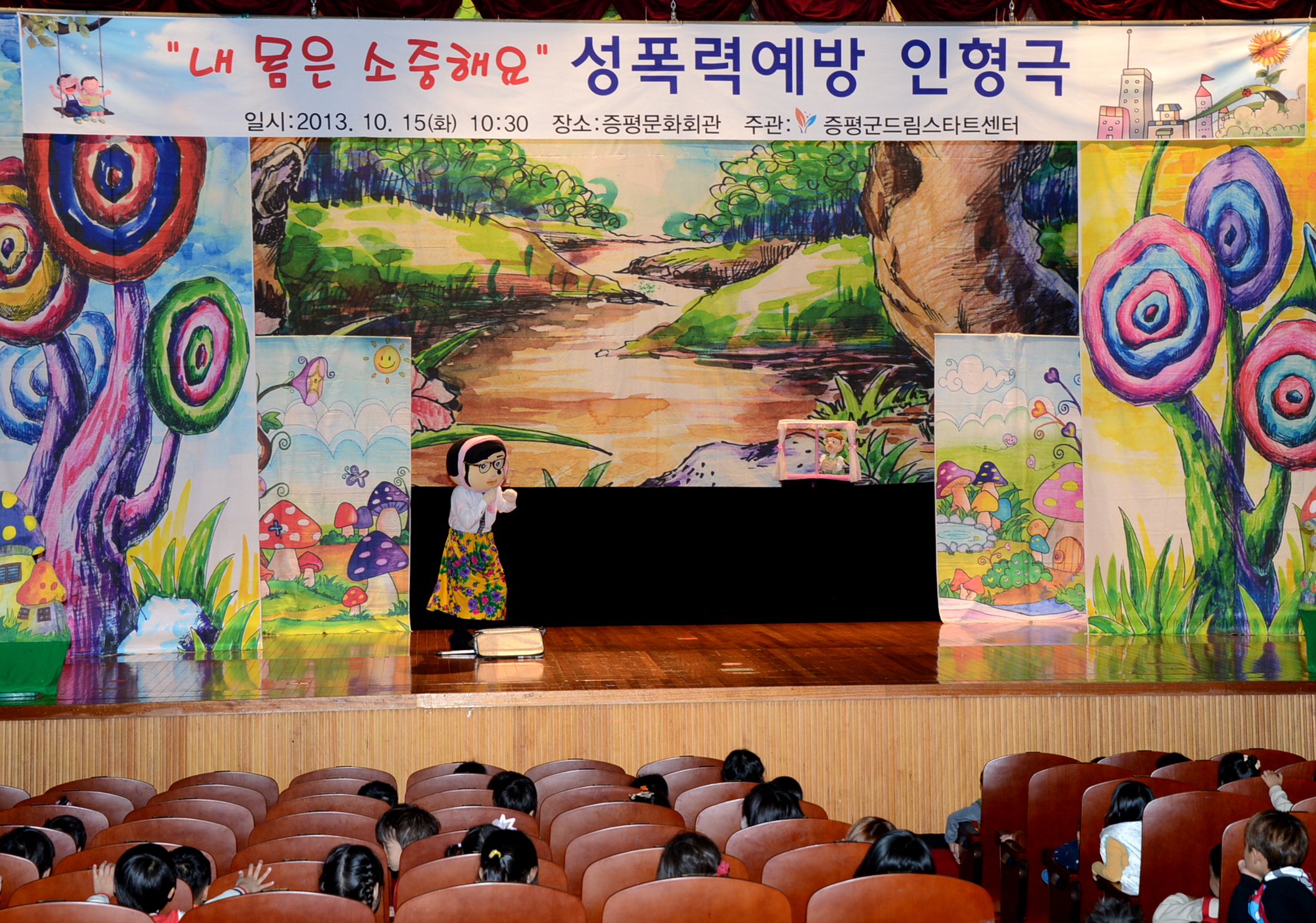 증평군 드림스타트센터는 15일 오전10시 증평문화회관에서 지역내 아동 800여명을 대상으로 ‘내 몸은 소중해요’라는 주제로 아동 성폭력 예방을 위한 인형극을 실시해 큰 호응을 얻었다. [보도자료실 참조]