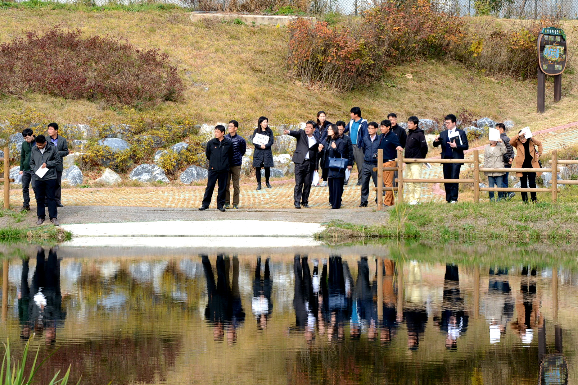 원주지방환경청에서는 수질오염총량관리제 담당자 전문교육의 교육과정으로 8일 증평군을 방문해 국내 최대규모의 비점오염저감시설을 견학했다. [보도자료실 참조]