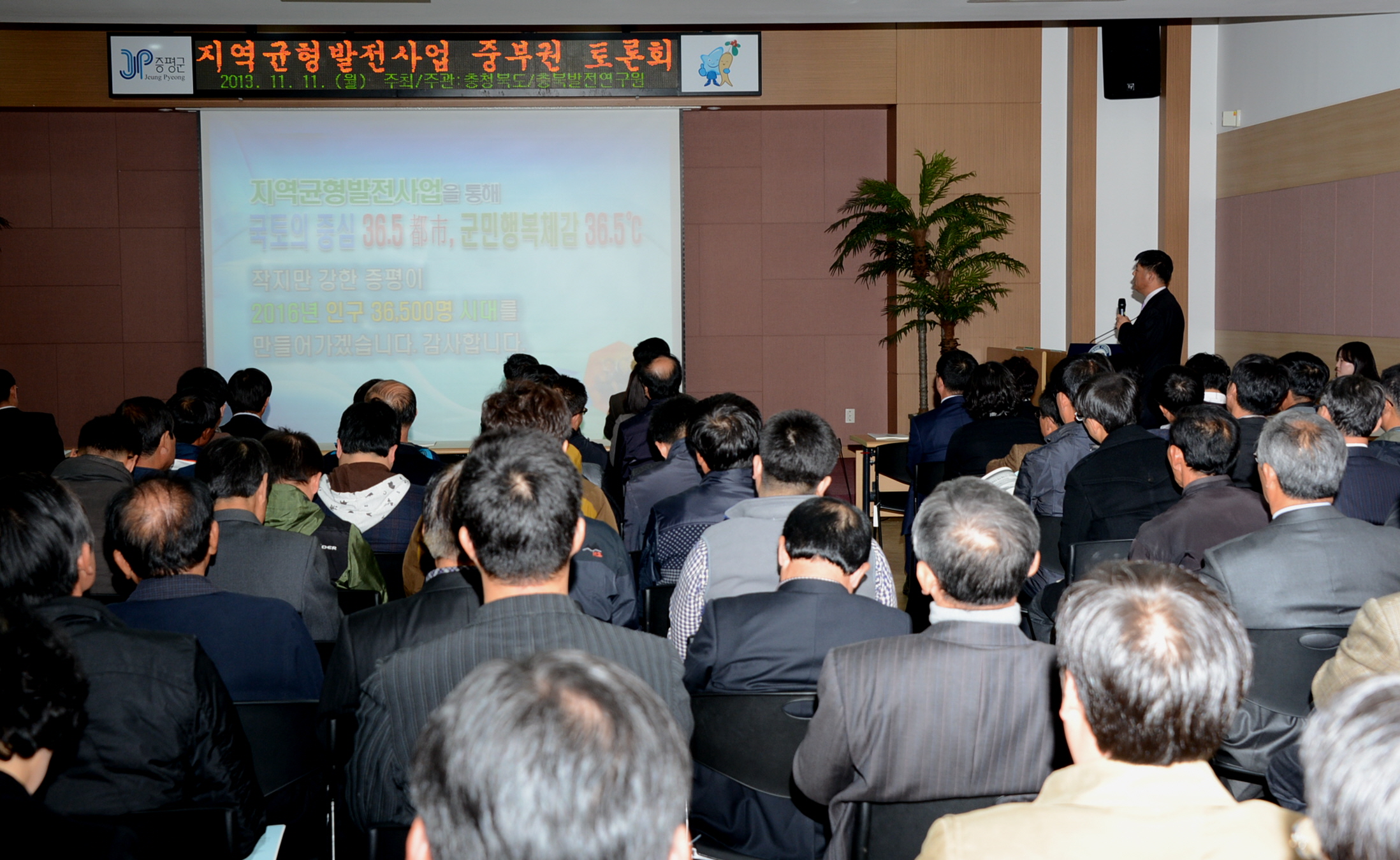 2007년부터 추진해온 2단계 3년차 지역균형발전사업의 본격적인 추진에 앞서 전문가 및 지역주민의 의견을 수렴해 정책에 반영하고자 충청북도가 주최하고 충북발전연구원 지역발전연구센터가 주관하는 권역별 토론회가 11일 증평군청 대회의실에서 열렸다. [보도자료실 참조]