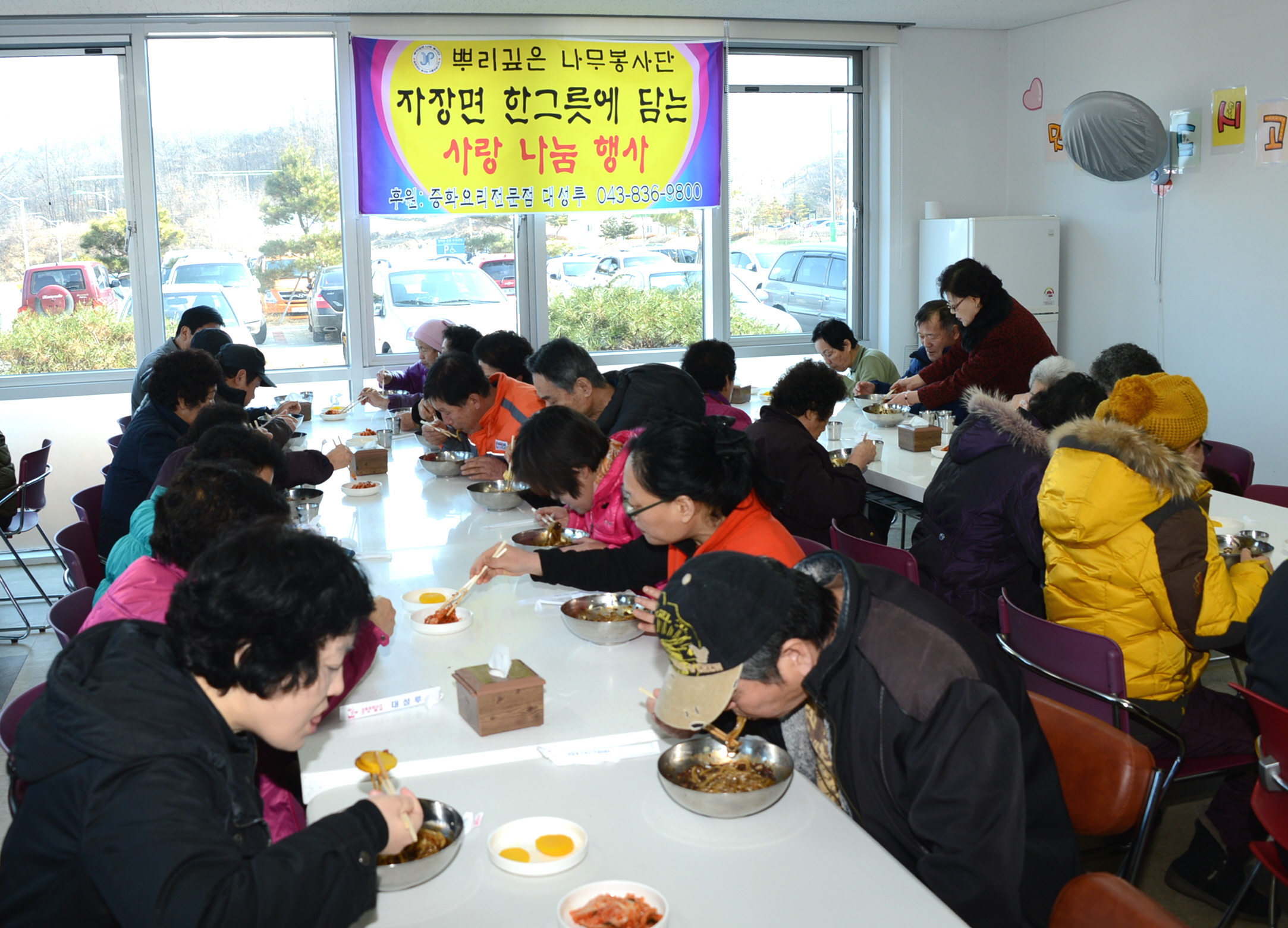 뿌리깊은 나무봉사회(회장 이종실)는 12일 오전12시 증평군장애인복지관 1층 식당에서 지역사회 환원사업의 일환으로 재가장애인들에게 자장면 100인분을 후원했다. [보도자료실 참조]