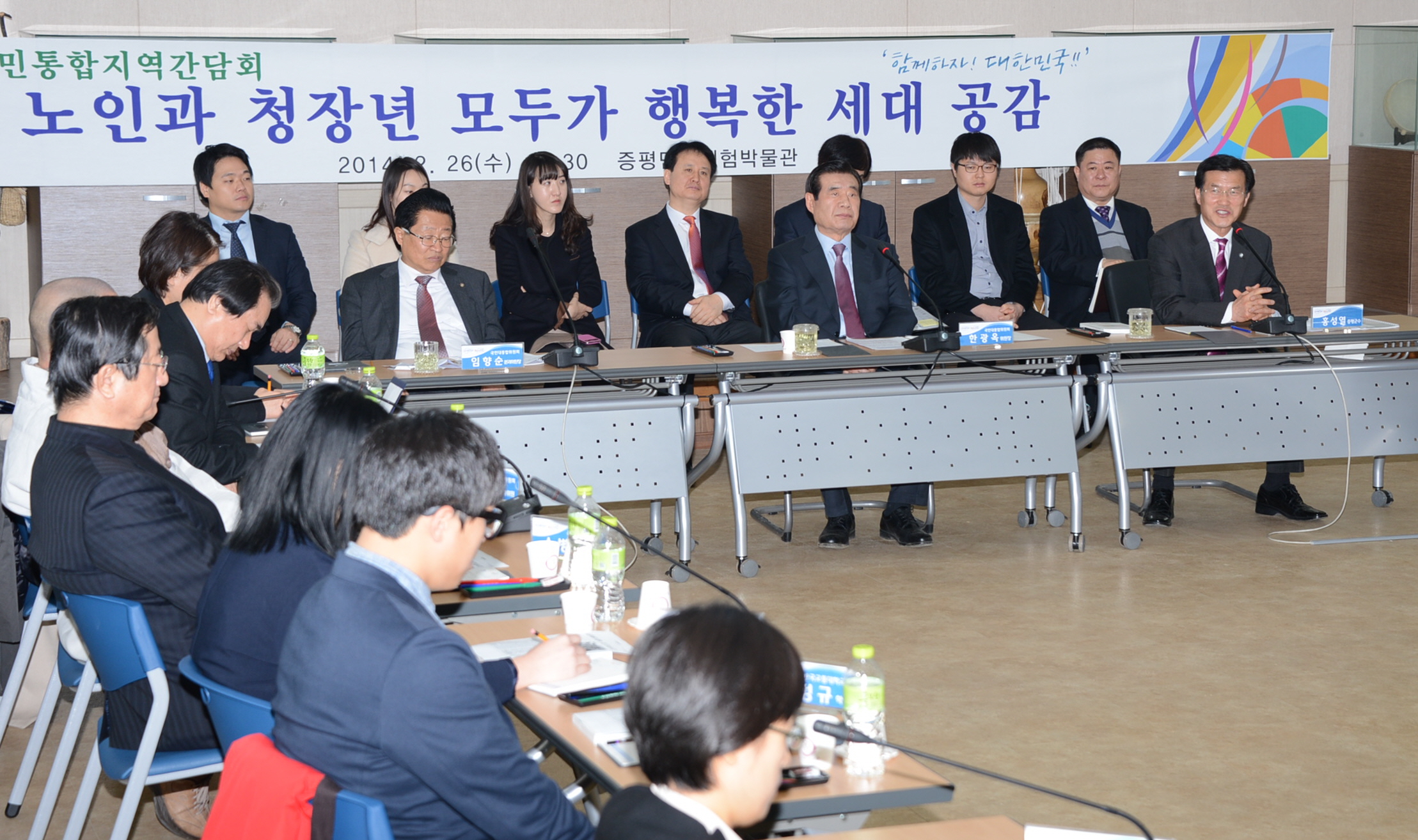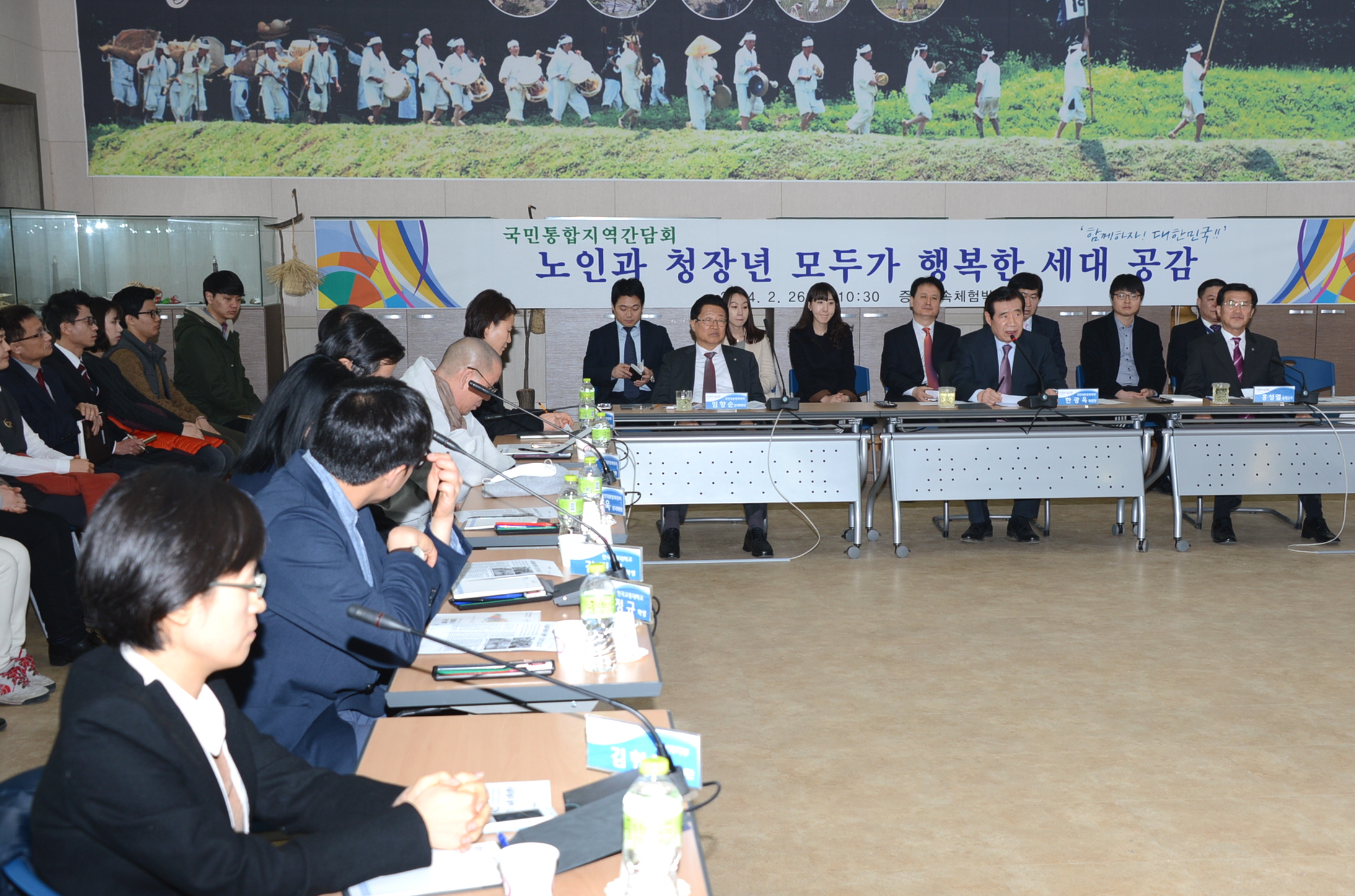 대통령 직속 국민대통합위원회(위원장 한광옥)는 26일 오전 10시 30분 증평군 민속체험박물관에서 ‘노인과 청장년 모두가 행복한 세대공감’을 주제로 현장토론회를 개최했다. [보도자료실 참조]