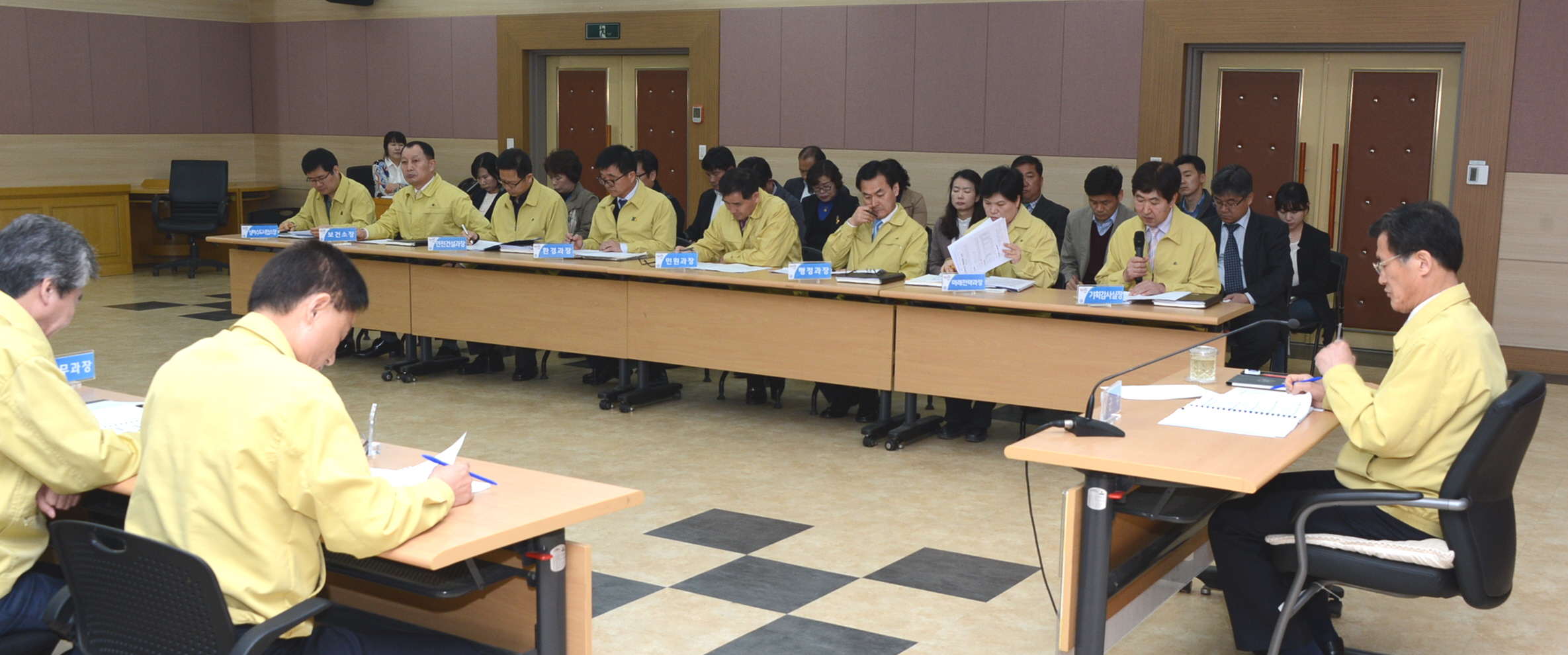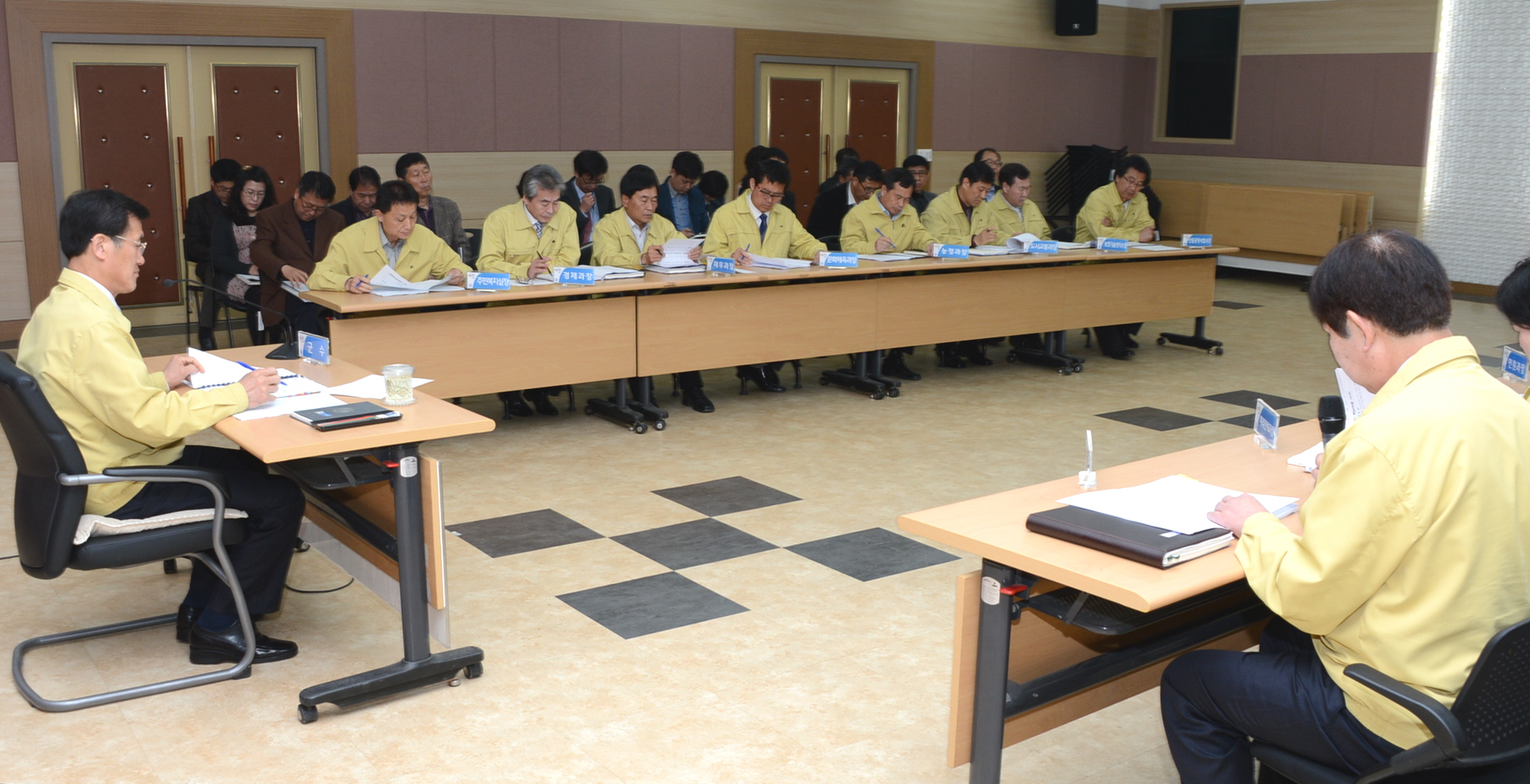 증평군은 28일 군청 대회의실에서 홍성열 군수 주재로 각 실과, 사업소장 및 팀장 등 60여명이 참석한 가운데 2015년도 정부예산확보 보고회를 개최하고 내년도 정부예산 확보에 총력을 기울여 지역발전을 견인해 나가기로 했다. [보도자료실 참조]