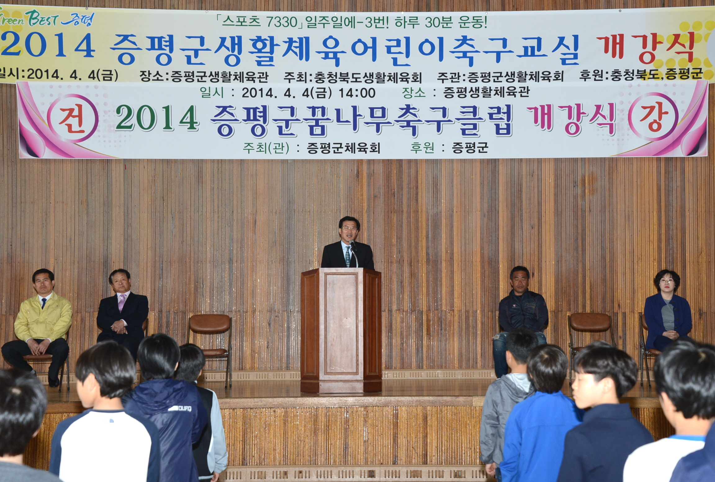 2014 생활체육꿈나무 어린이축구교실 개강식이 4일 오후 2시 증평생활체육관에서는 축구교실 어린이 25명과 학부모, 관계자 등 40여명이 참석한 가운데 개강식을 가졌다. [보도자료실 참조]