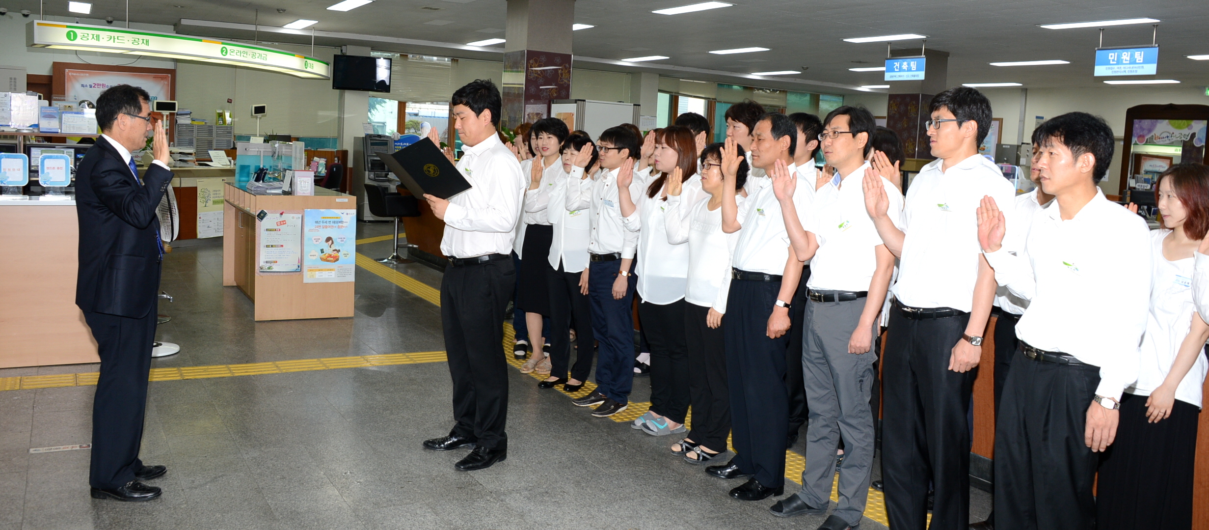 증평군은 6월부터 매주 화요일 민원과를 비롯한 읍․면사무소에서 근무시간 전 친절구호를 외치고 서로 격려하는 ‘친절 3S 다짐의 날’을 운영한다.[보도자료실 참조]