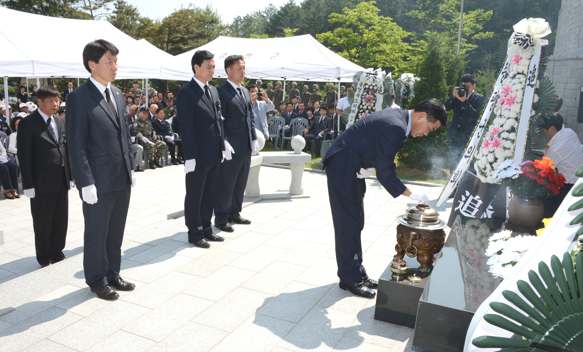 증평군은 6일 오전 10시 증평군 보건복지타운 내 충혼탑에서 홍성열 증평군수를 비롯한 각급 기관단체장, 유족, 주민, 군인 등 300여명이 참석한 가운데 순국선열의 명복을 빌고 호국영령의 얼을 기리는 제59회 현충일 추념식을 거행한다. [보도 자료실 참조]