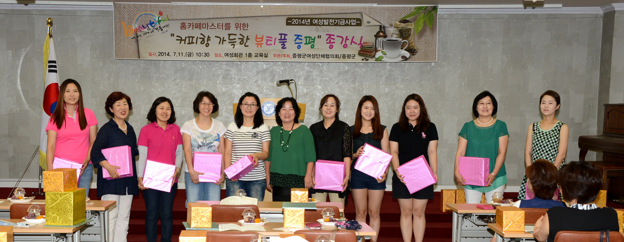 증평군은 11일 증평군 여성회관에서 2014년 성평등기금사업의 일환으로 진행된 홈카페마스터 프로그램 종강식을 가졌다. [보도자료실 참조]