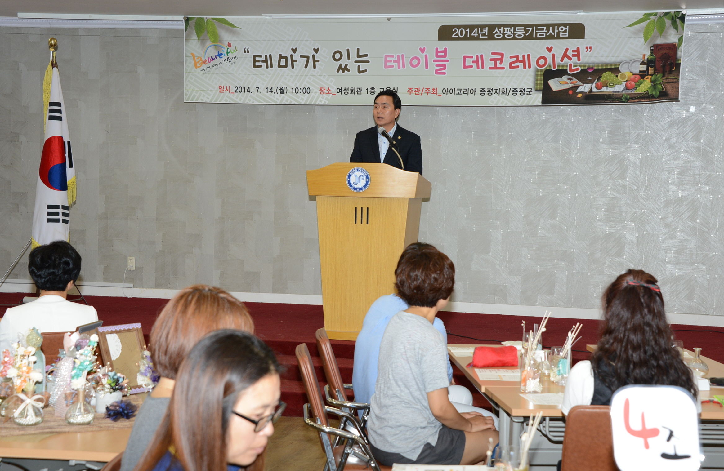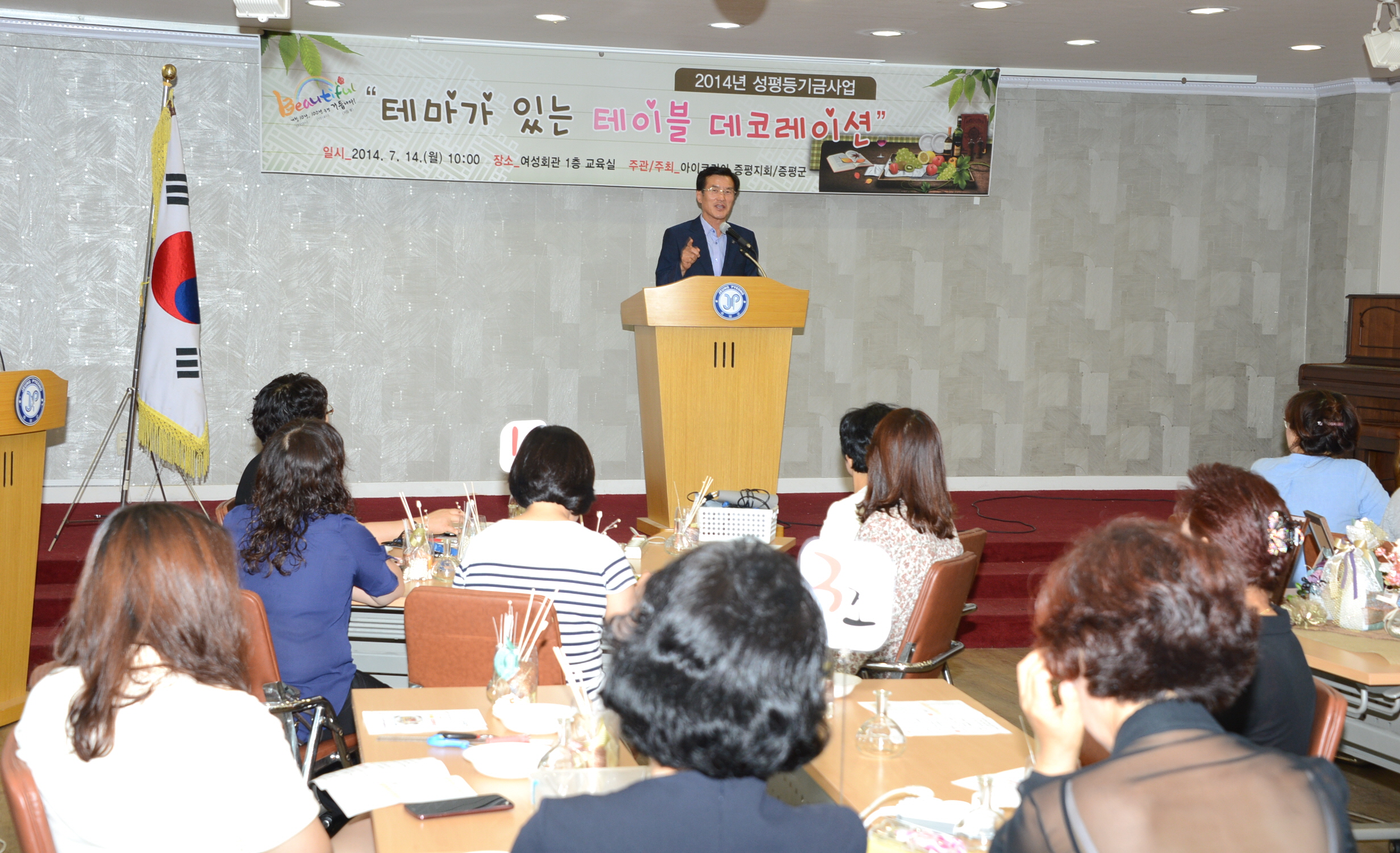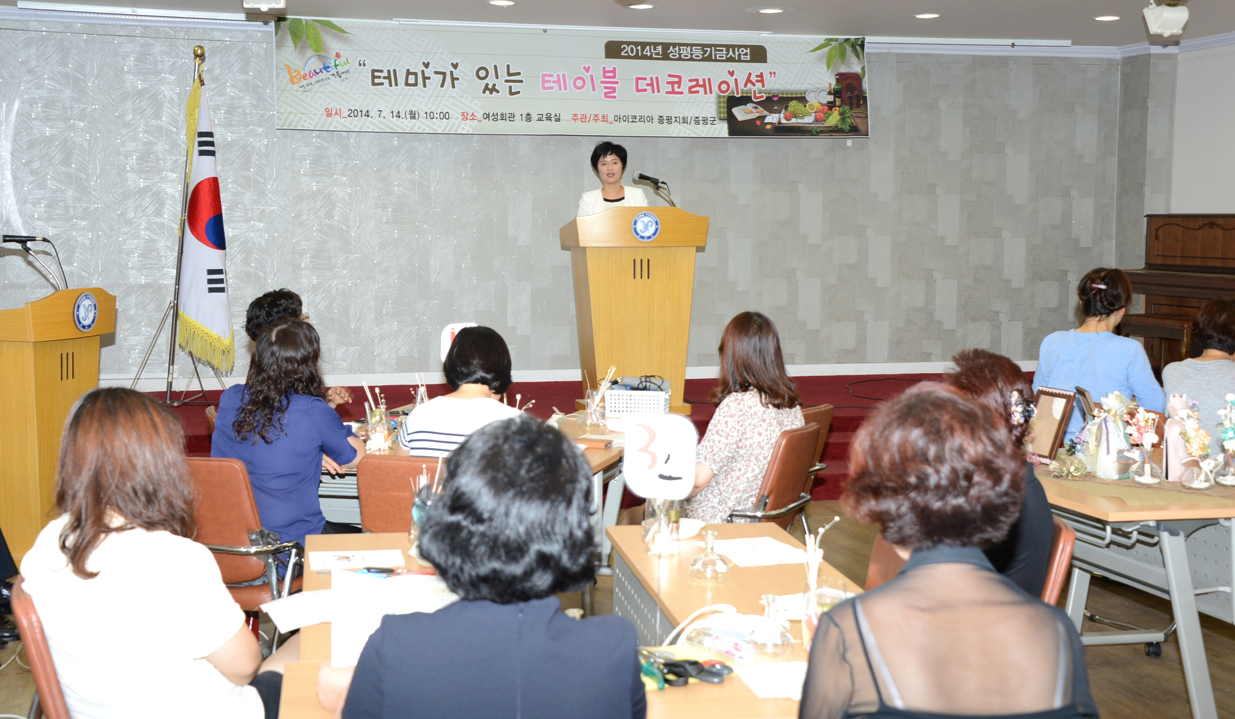 증평군은 14일 여성회관 교육실에서 2014년도 성평등 기금사업의 일환으로 기획·추진된 ‘테마가 있는 테이블 데코레이션’ 개강식을 개최했다. [보도자료실 참조]