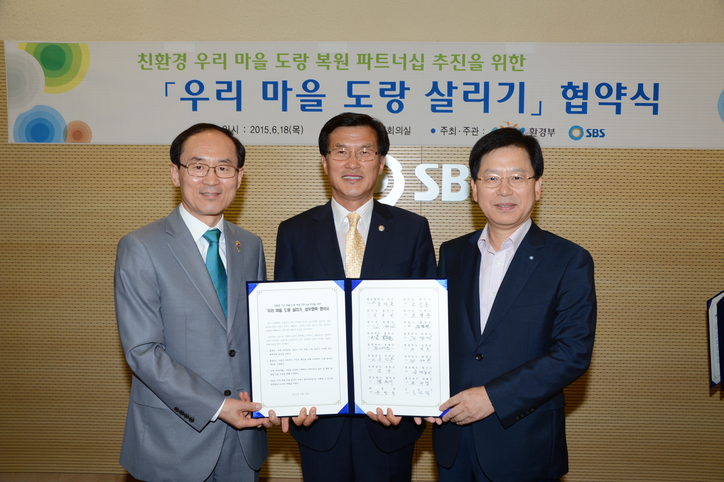 증평군은 18일 서울 SBS 목동사옥에서 환경부(장관 윤성규), SBS(사장 이웅모)와‘도랑 살리기 사업’의 성공적인 추진을 위한 협약을 체결했다.(보도자료실 참조)