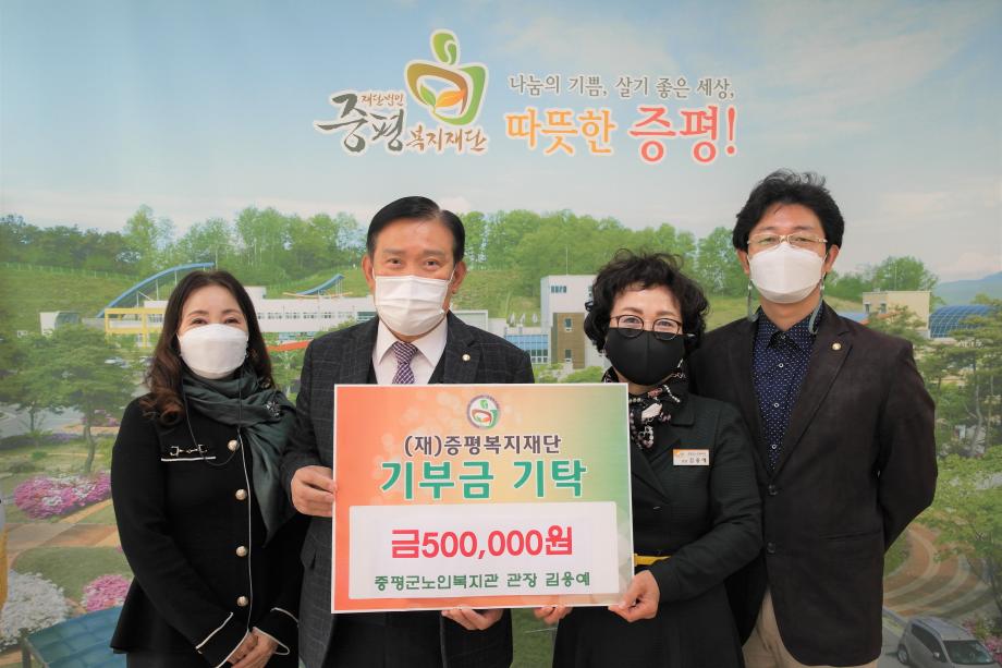 증평군노인복지관 김용예 관장이 지역의 복지를 위해 써달라며 (재)증평복지재단에 50만원을 기탁했다.