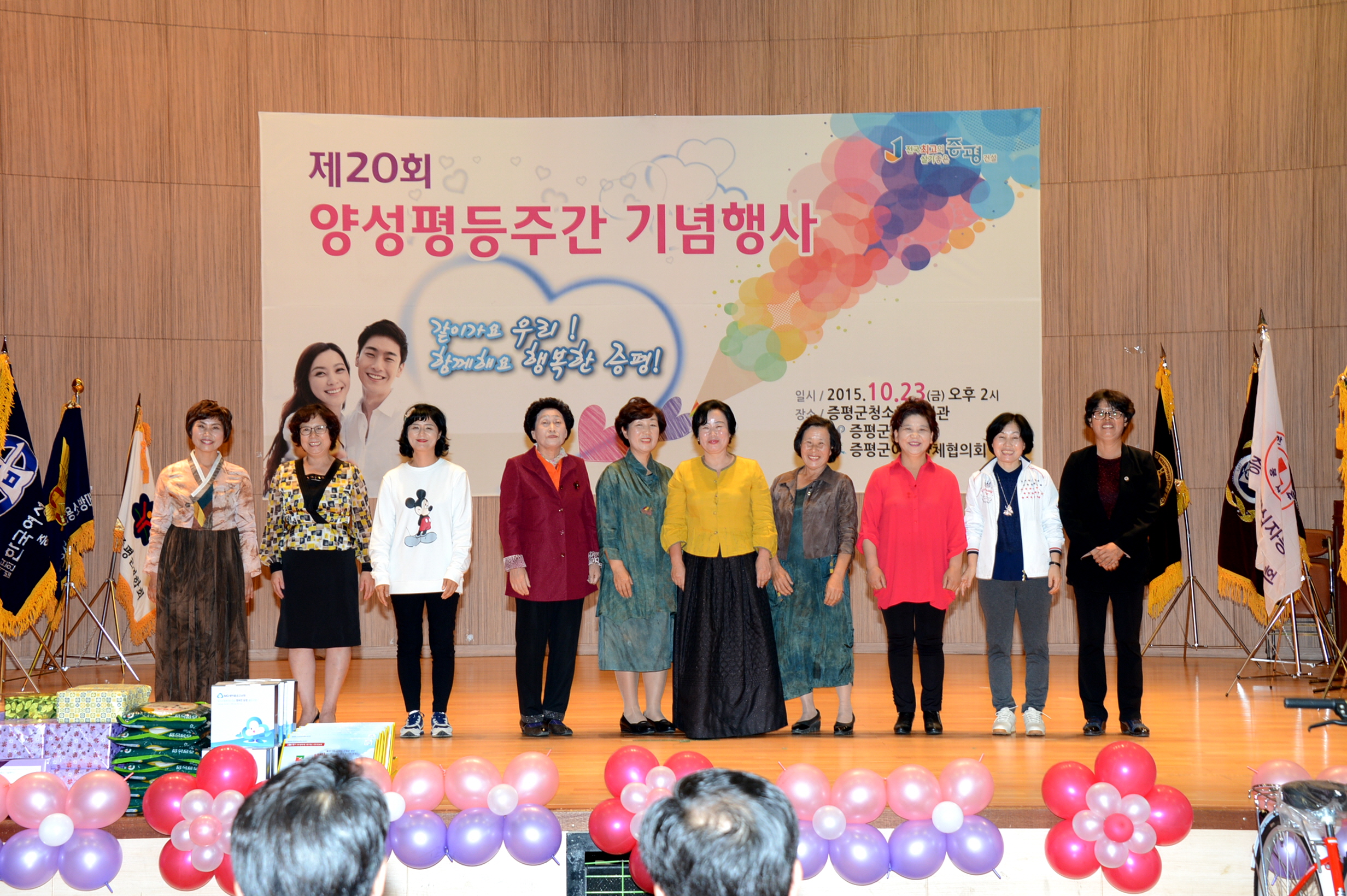 증평군은 23일 오후 1시 30분 증평군청소년수련관 다목적강당에서 홍성열 증평군수, 우종한 군의장, 강춘희 증평군 여성단체협의회장, 변혜정 충북도 여성정책관을 비롯해 500여명이 참석한 가운데 제20회 양성평등주간 기념행사를 개최했다.(보도자료실 참조)