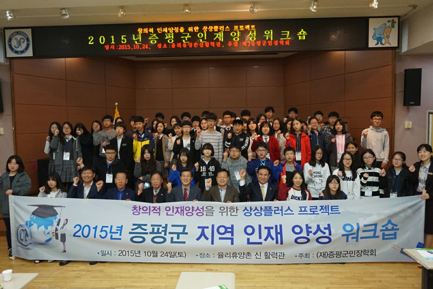 재단법인 증평군민장학회(이사장 홍성열 증평군수)에서는 24일 오전10시 증평읍 율리휴양촌에서 2015년 증평군민장학회 장학생으로 선발된 지역 내 중․고등학생 80여명을 대상으로 지역인재양성워크숍을 개최했다.