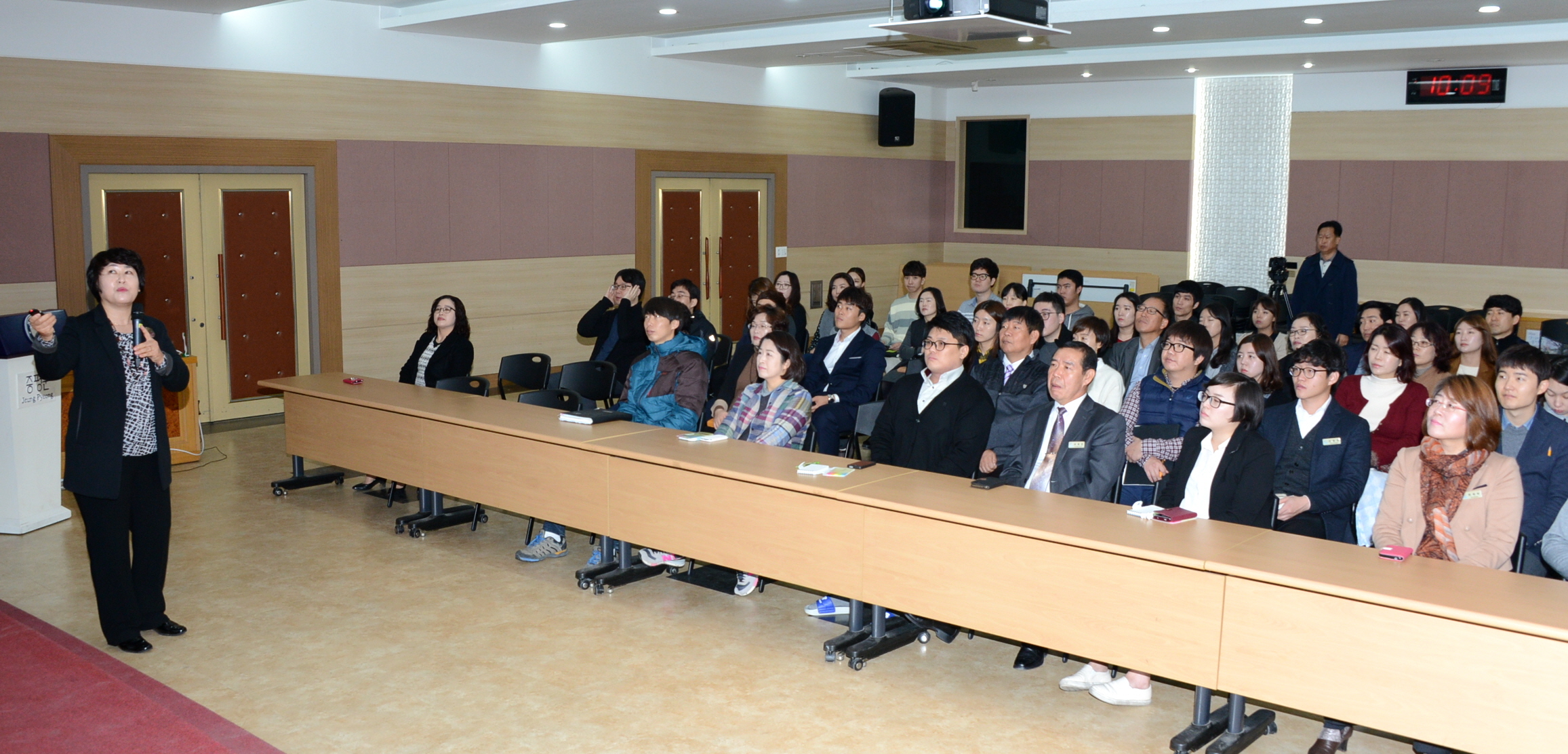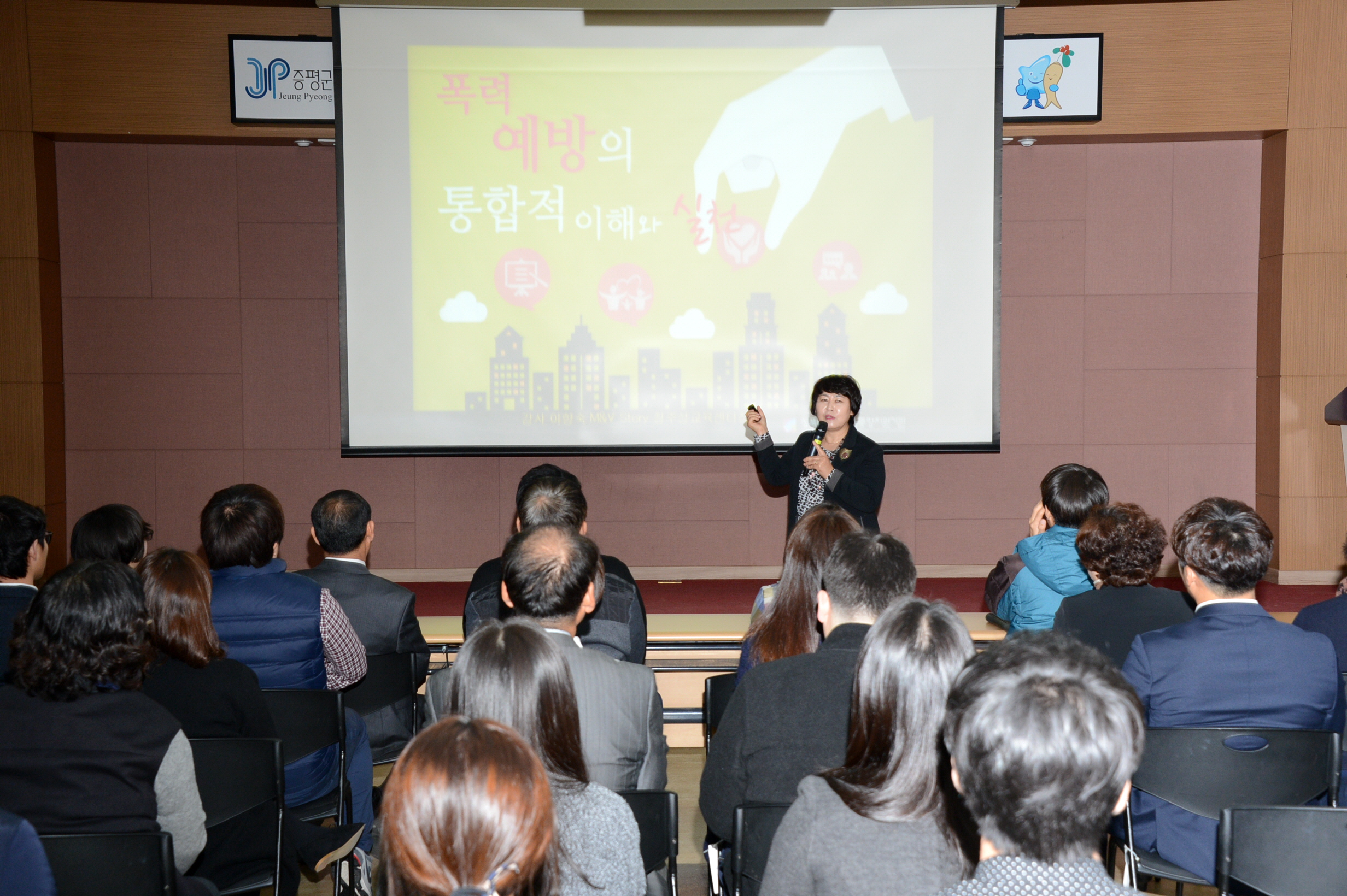 증평군은 17일 오전 10시 군청 대회의실에서 군전직원을 대상으로 건전하고 즐거운 직장분위기 조성을 위해 이향숙(M&V Story 청주성교육센터 폭력예방통합교육전문강사) 강사를 초청해 ‘2015년 성희롱·성매매·성폭력·가정폭력 예방 통합교육’을 실시했다.(보도자료실 참조)
