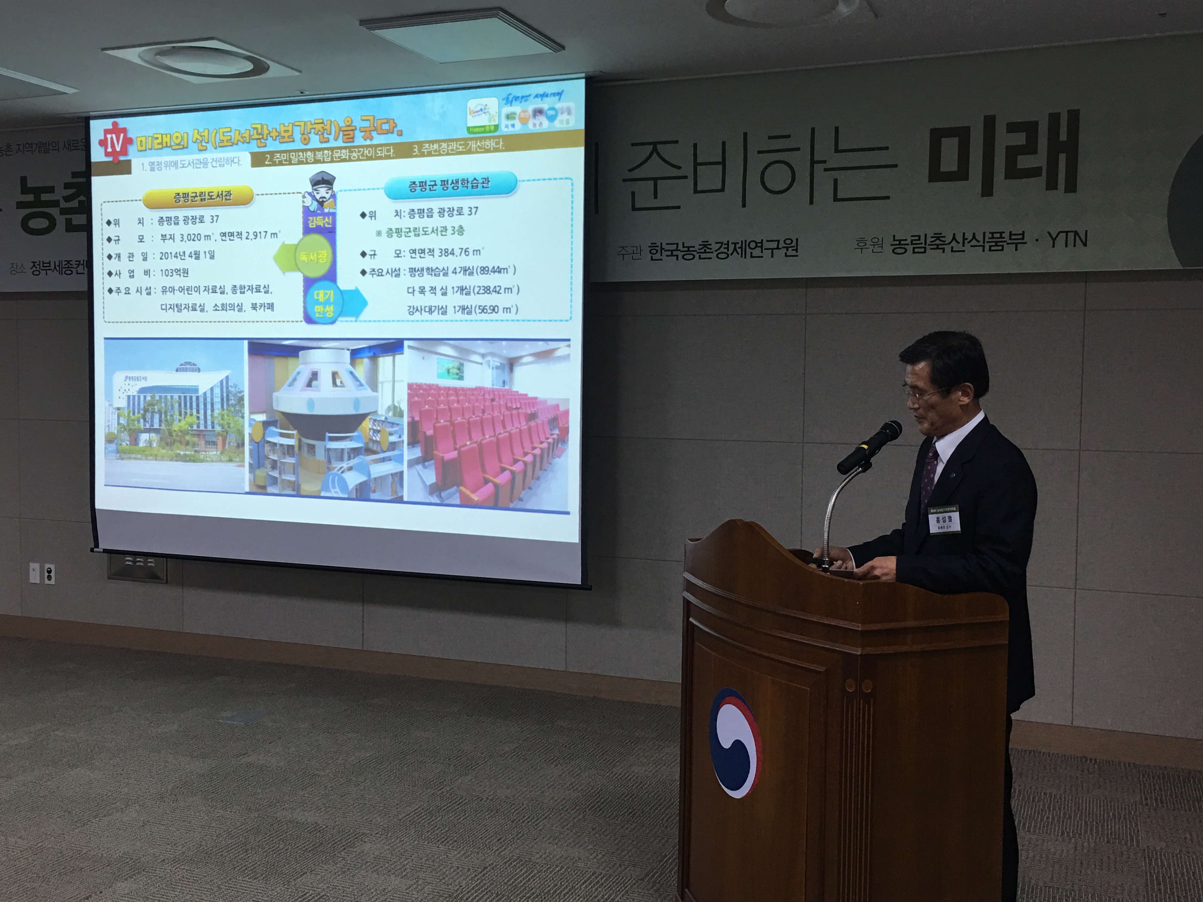 홍성열 증평군수가 농어촌지역 정책포럼에 참석해 증평군이 추진했던 지역개발 우수사례를 발표했다.