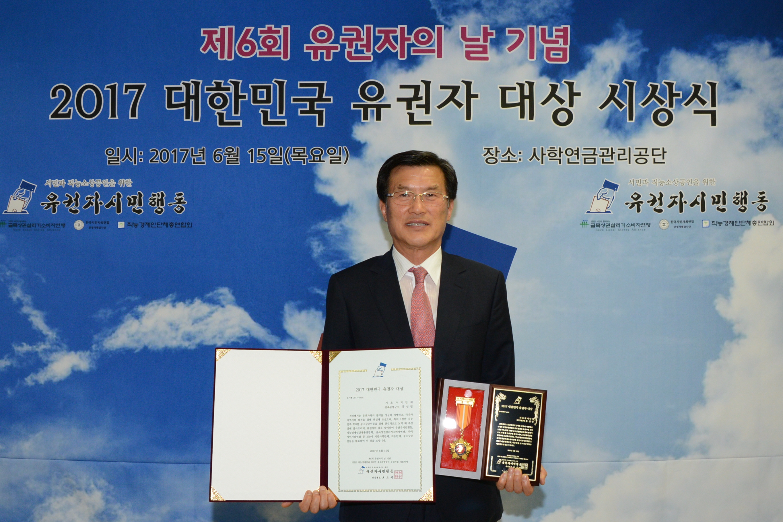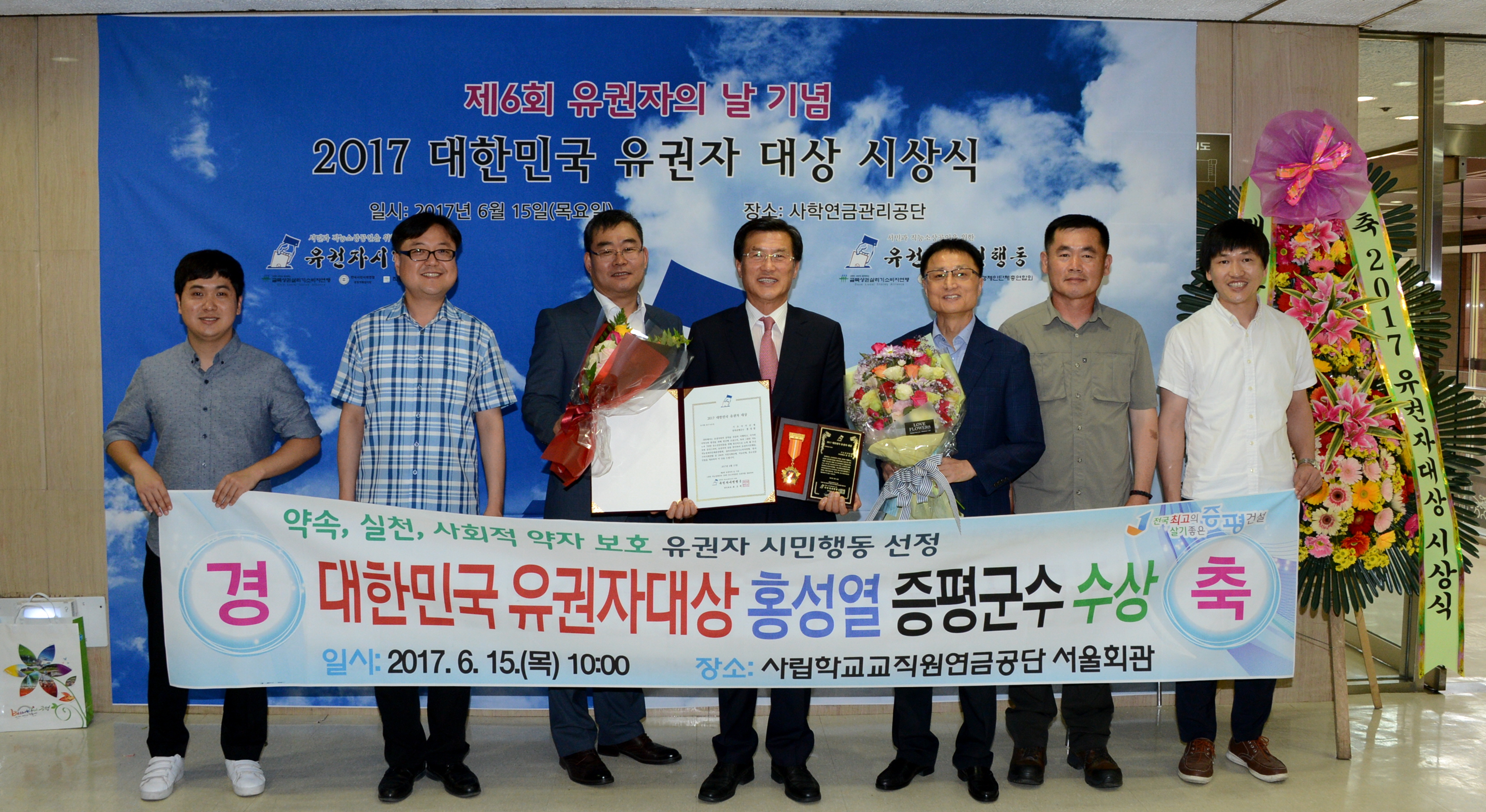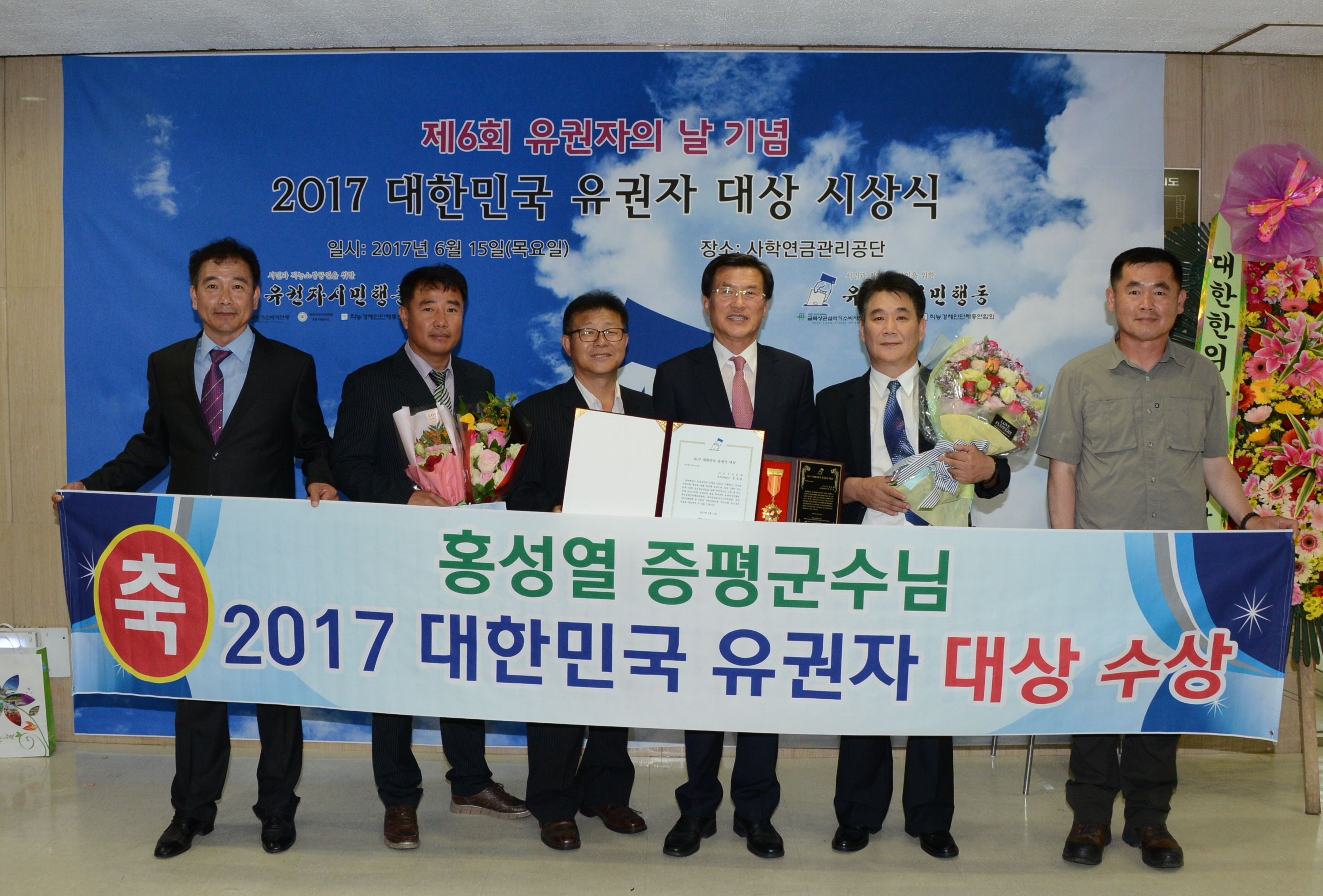 홍성열 군수가 15일 사립학교교직원연금공단 서울회관에서 열린 제6회 대한민국 유권자대상 시상식에서‘대한민국 유권자 대상’을 수상했다.(보도자료실 참조)